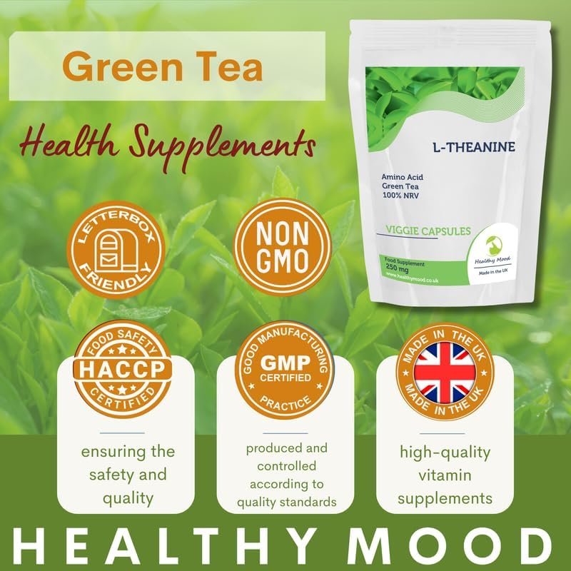 L-Theanine 250mg Green Tea 250 Veg Capsules – Relaxation & Stress Relief Supplement – Supports Focus, Mental Clarity & Calm Without Drowsiness