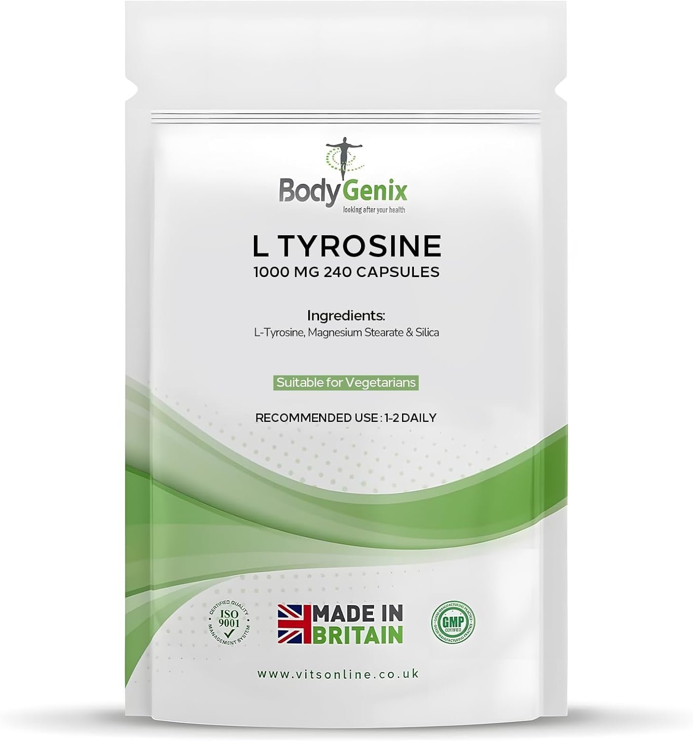 NATURAL SUPPLEMENT: This L-Tyrosine supplement is formulated under precise care without any harmful chemicals, additional preservatives or flavours, ensuring a pure solution to provide a natural energy supplement which is suitable for vegetarians.