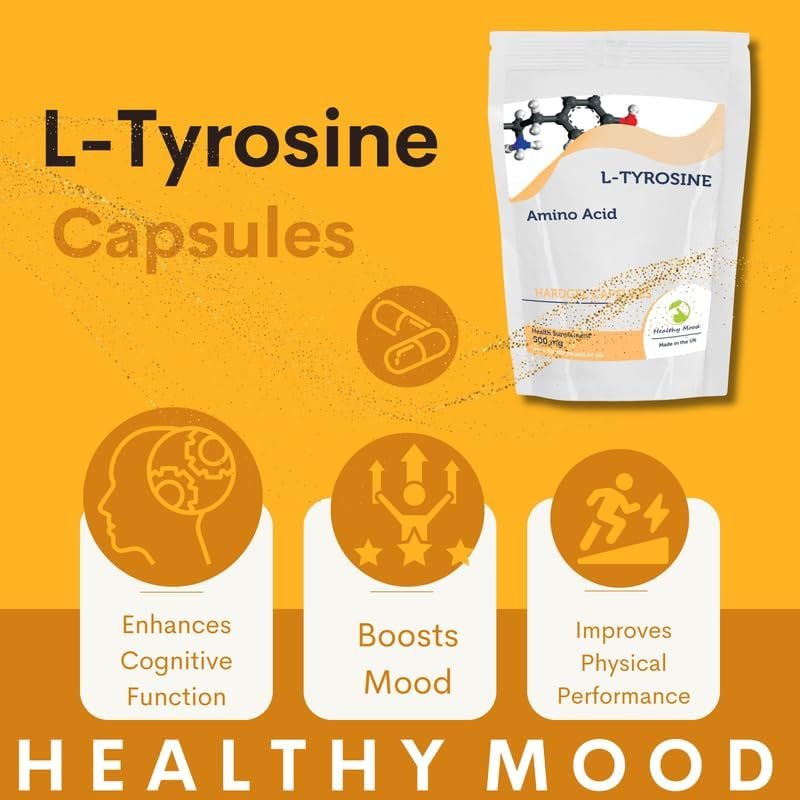 L-Tyrosine 500mg Capsules – Amino Acid Supplement for Mental Focus, Mood Support, & Stress Relief – Brain Health & Cognitive Function Booster