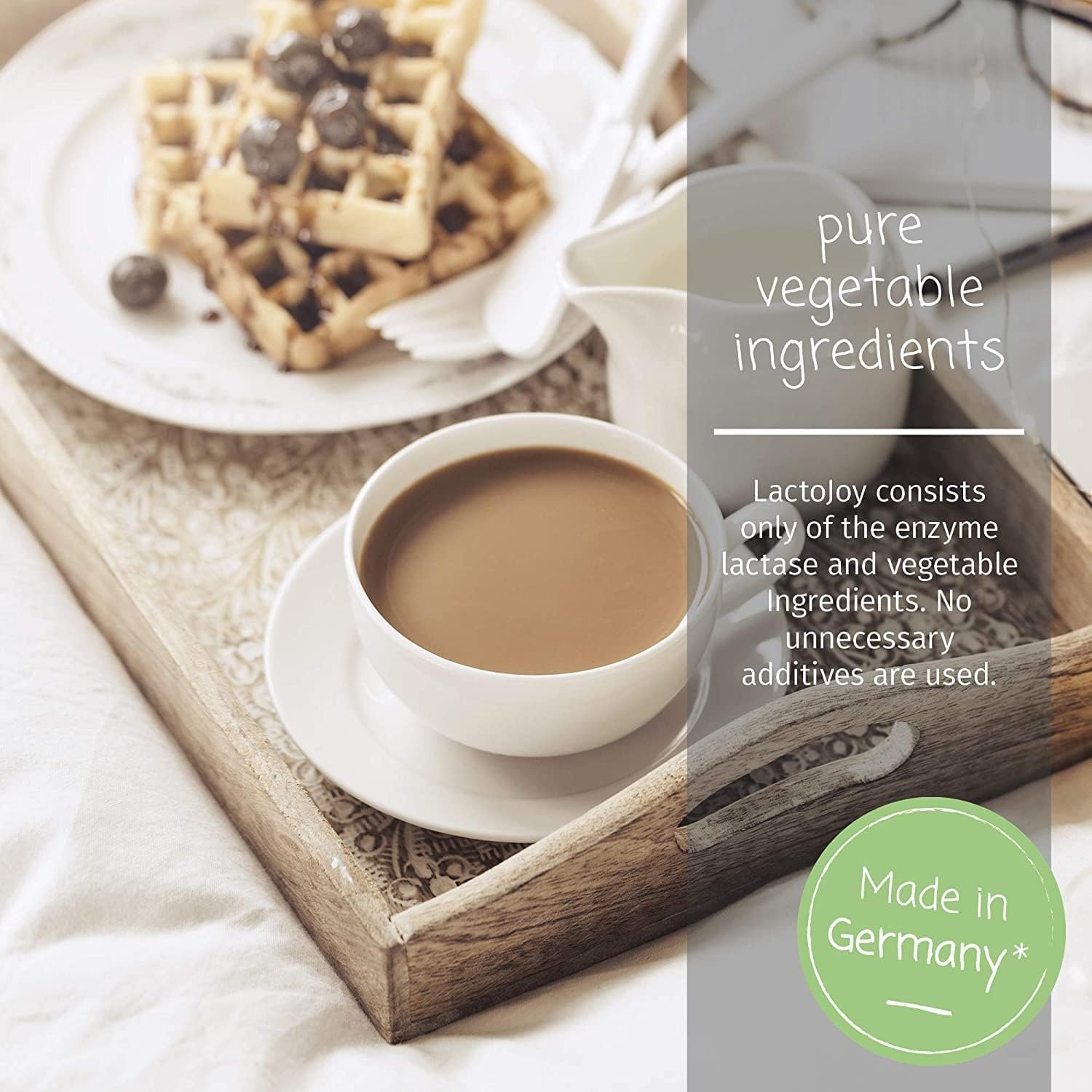 LactoJoy consists only of the enzyme lactase and vegetable ingredients. No unnecessary additives are used.