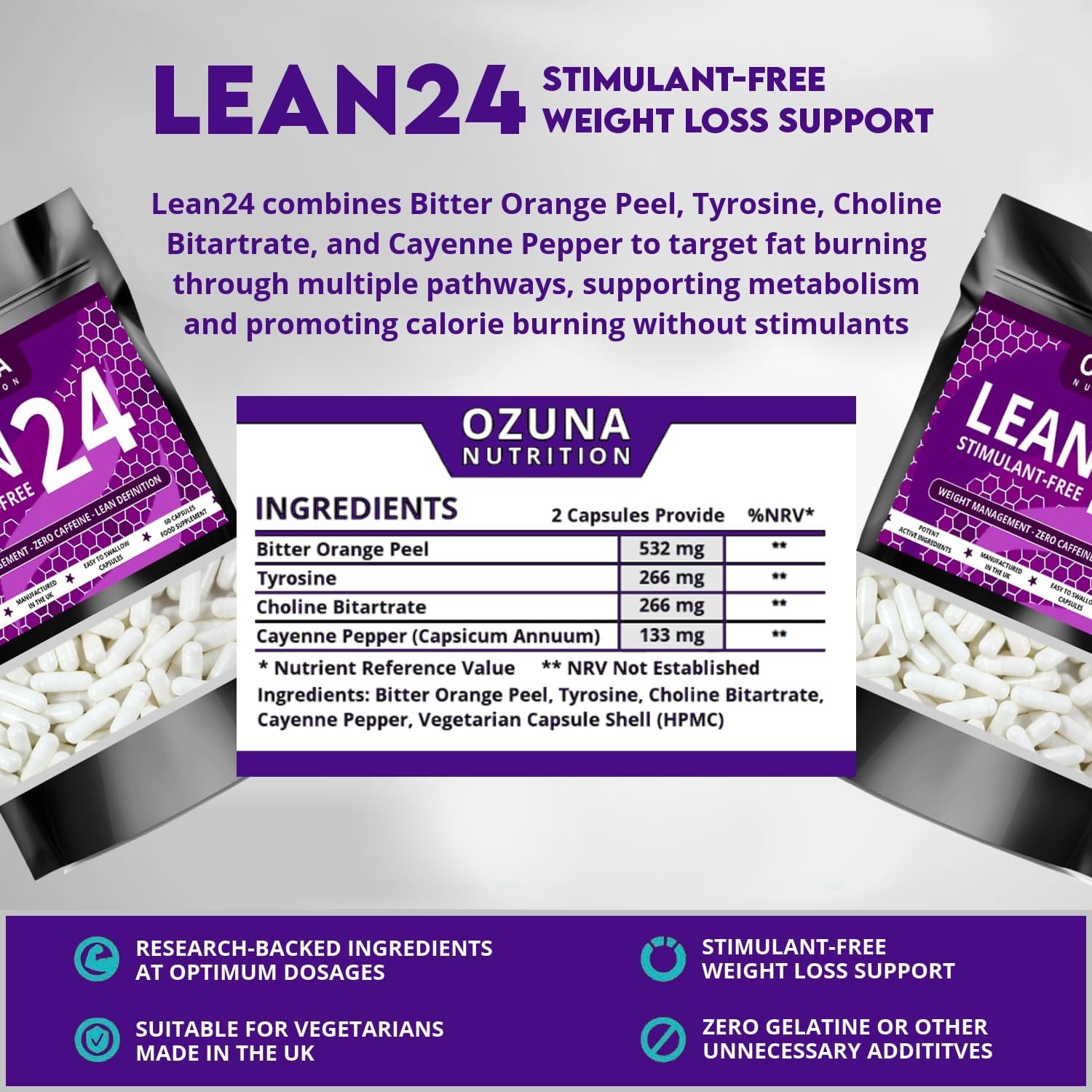 MADE IN THE UK | VEGETARIAN-FRIENDLY FORMULA | 1-MONTH SUPPLY: Lean24 is manufactured to the highest standards in the UK, ensuring a reliable, high-quality product. With a vegetarian-friendly formula, this one-month supply fits seamlessly into diverse lifestyles.
