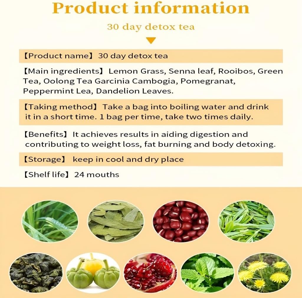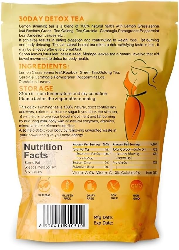 Our Lemon 30-Day Weight Loss Tea is a convenient choice for your wellness journey. Each box has 30 individual 3g bags, enough for a full month’s use. It works to support fat burning, promote body detox, and ease digestion—helping reduce bloating and support weight management. With a refreshing lemon taste, it’s easy to enjoy: just steep 1 bag in hot water, drink quickly, and take twice a day. It also delivers mild energy to keep you going, making it a great addition to your daily routine.