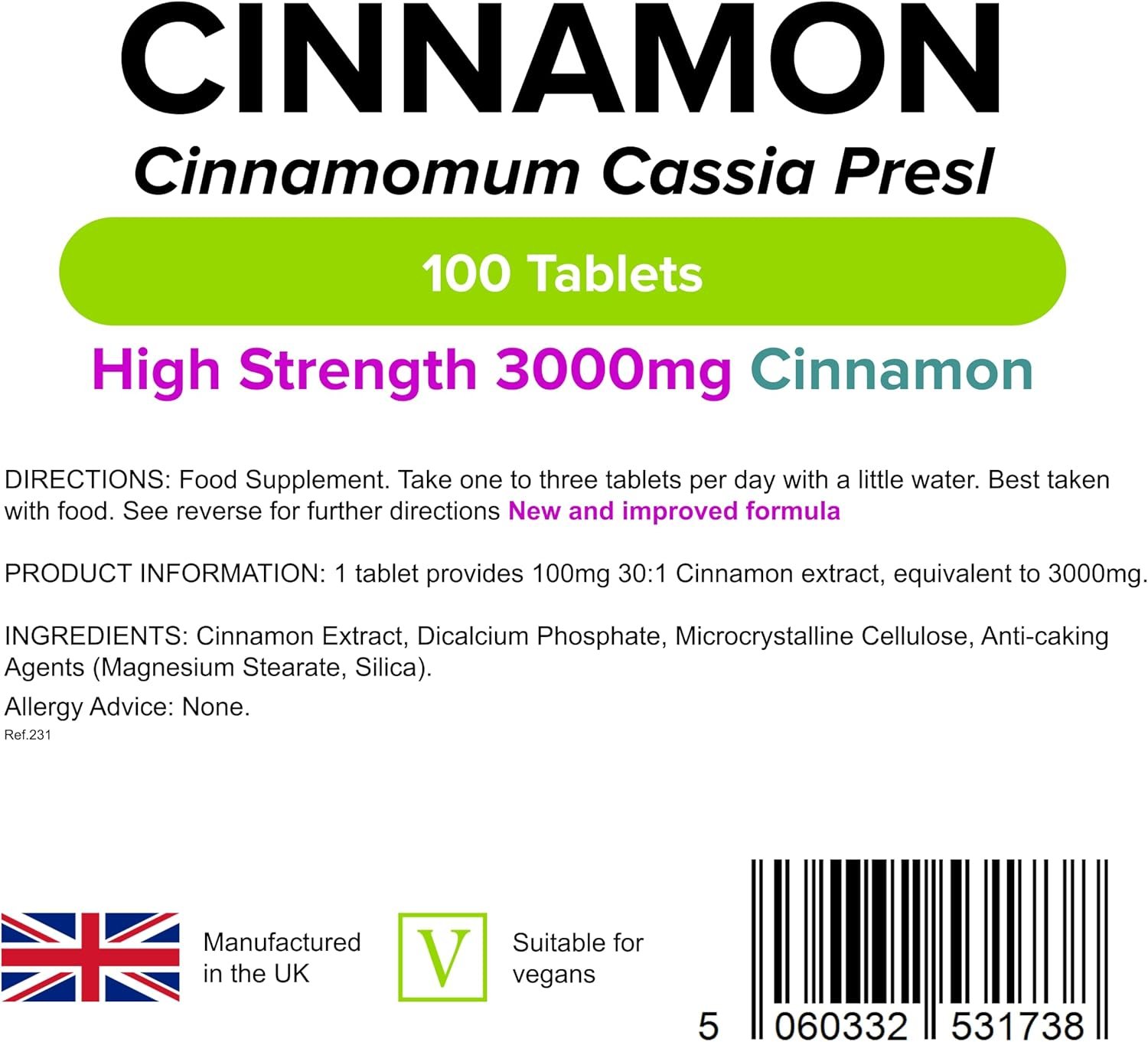 SUPER 30X EXTRACT – Each tablet contains a powerful 30x concentrated extract of cinnamon bark powder, equivalent to 3000mg of dried cinnamon, providing you with the maximum benefits in a convenient form.