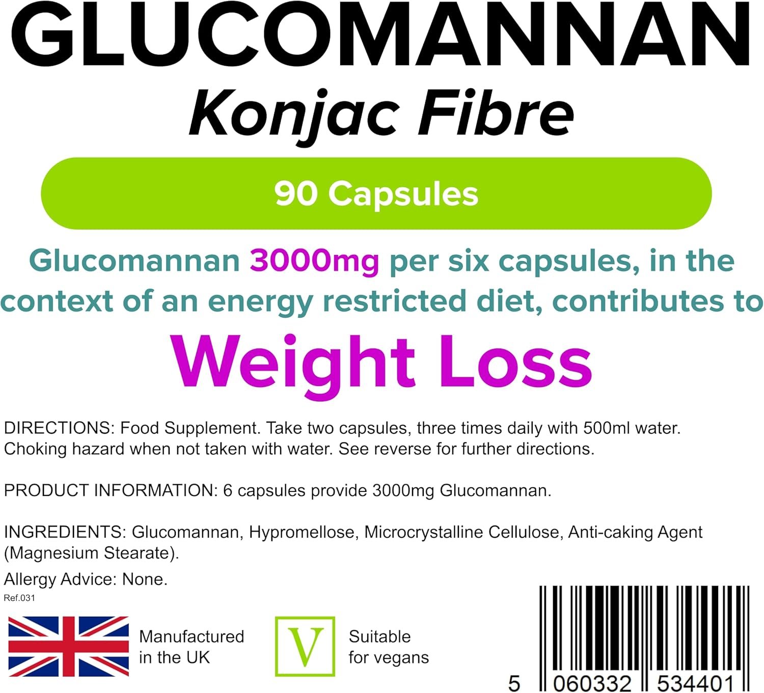Lindens Glucomannan (Konjac Fibre) Capsules – 3,000mg Per Serving – 90 Pack – Weight Loss Aid – Contributes Towards The Reduction of Appetite – Weight Loss Supplement – Letterbox Friendly