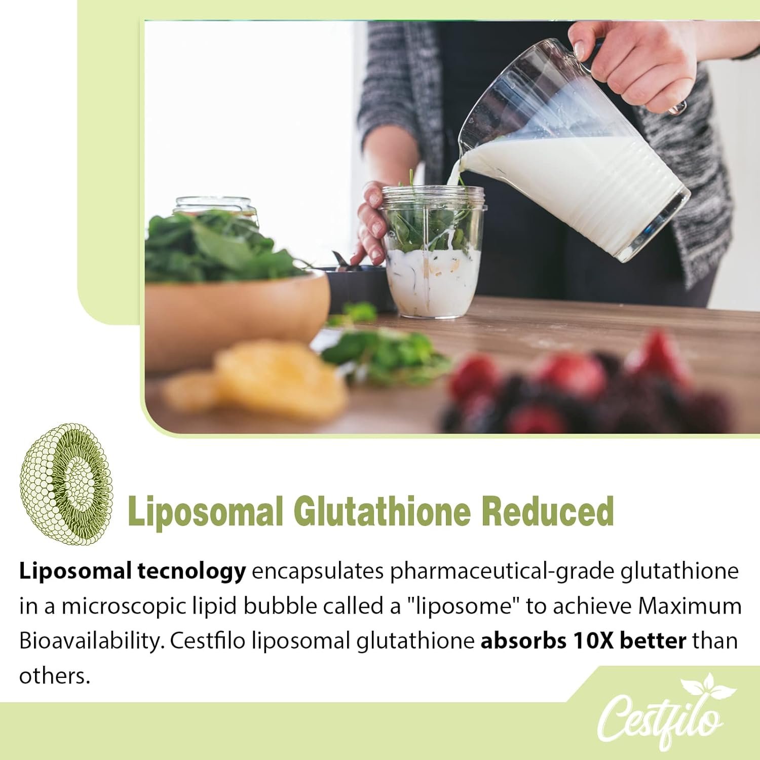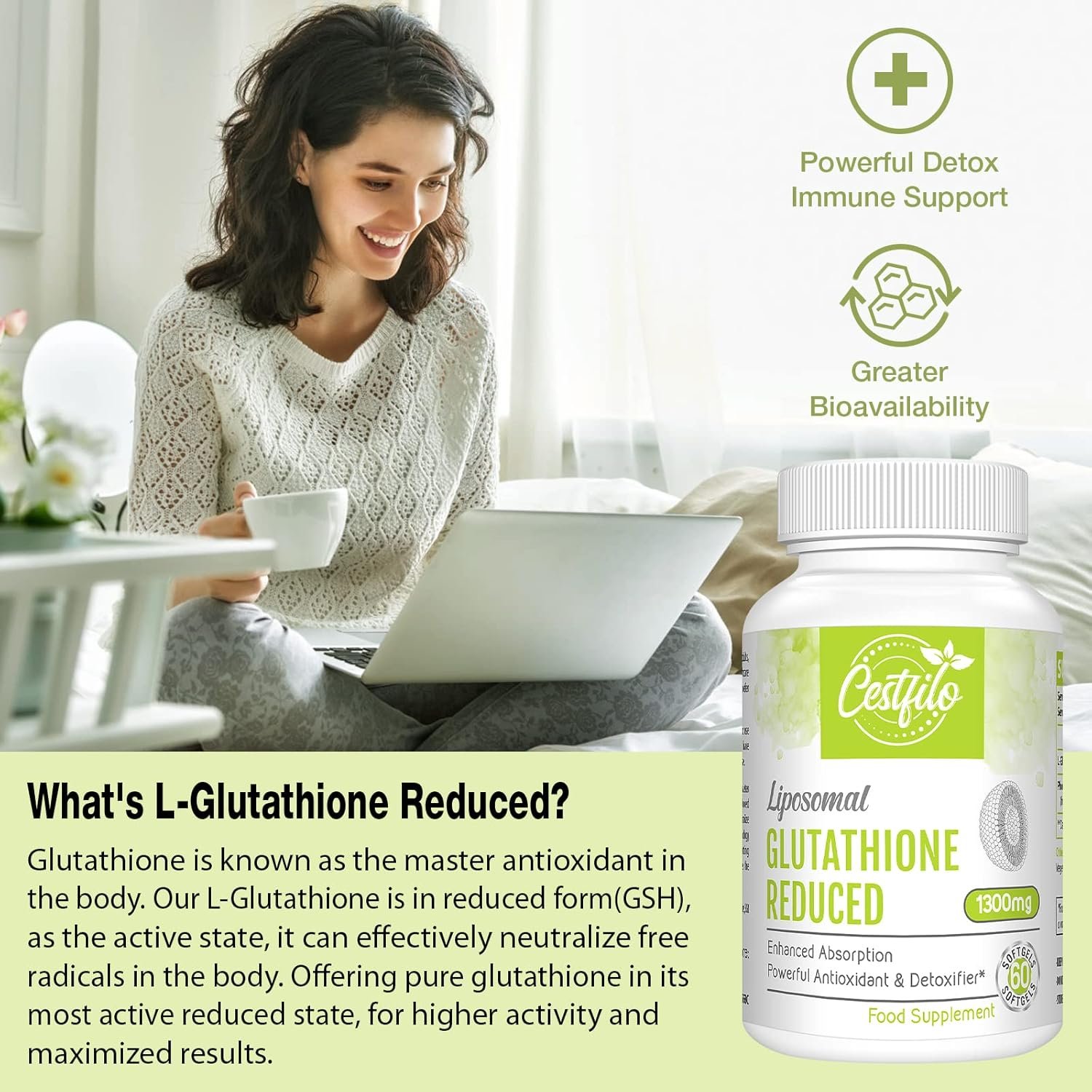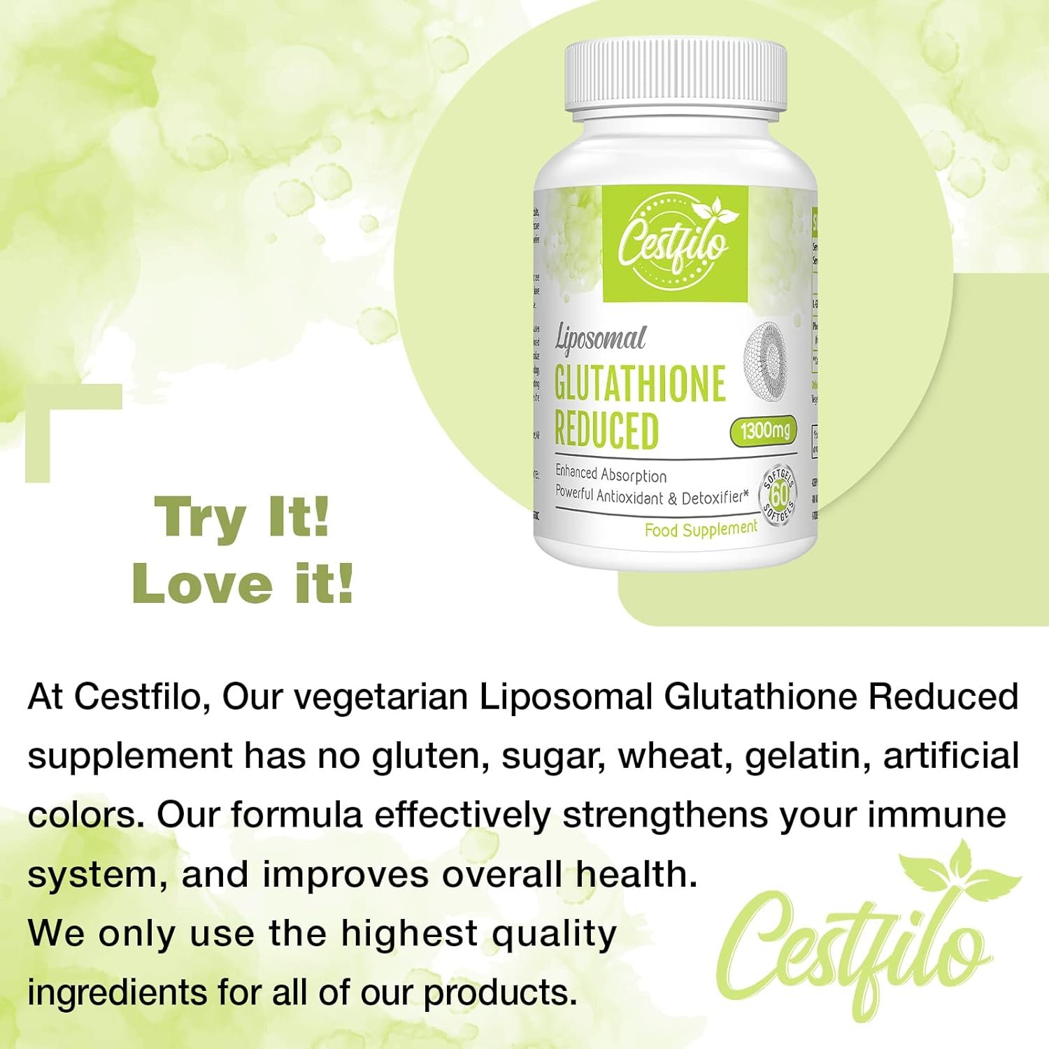 Liposomal Technology & Better Absorption – Combined with Liposomal delivery technology system to help with the bioavailability of glutathione, liposomal refers to glutathione has undergone a special process that encapsulates the glutathione molecule inside of a lipid. Doing this protects the glutathione and dramatically improves absorption. Cestfilo is One of the highest bioavailable glutathione products that offers a 1300mg does with every single softgel, for a total of 60 softgels per bottle.