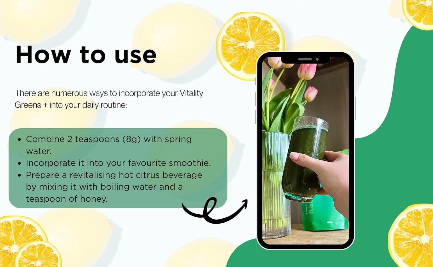 REFRESHING LEMON FLAVOUR + MIXES IN SECONDS – Light citrus taste designed to be genuinely drinkable. Stir into water, smoothies, or make a hot green lemon tea. And if you don’t love the taste, we’ll refund you — no questions asked.