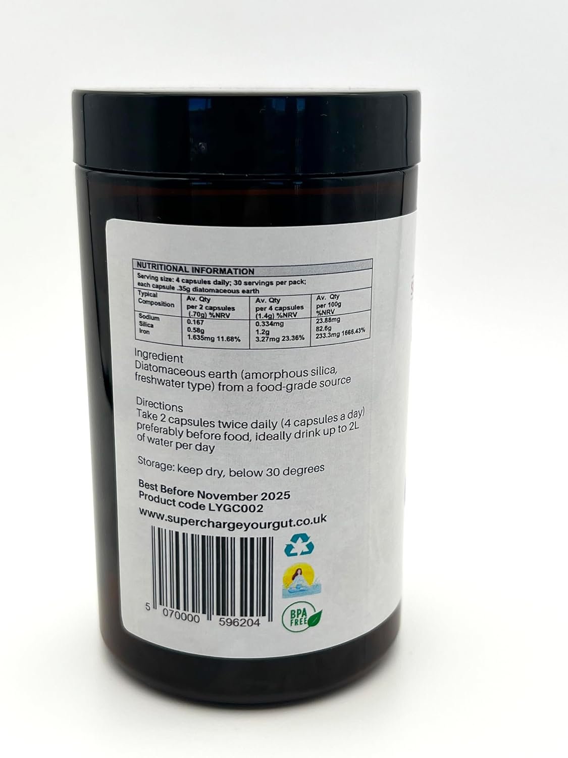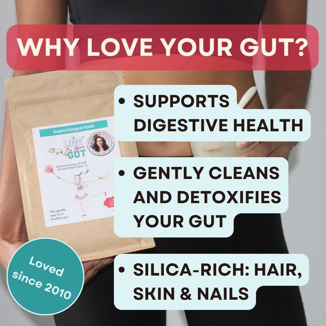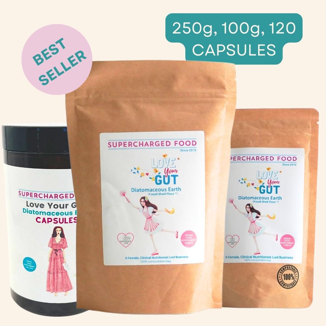 Love Your Gut Diatomaceous Earth Capsules – Food Grade Gut Health Supplement – Vegan, Natural, Detox & Cleanse – by Lee Holmes, Supercharged Food UK