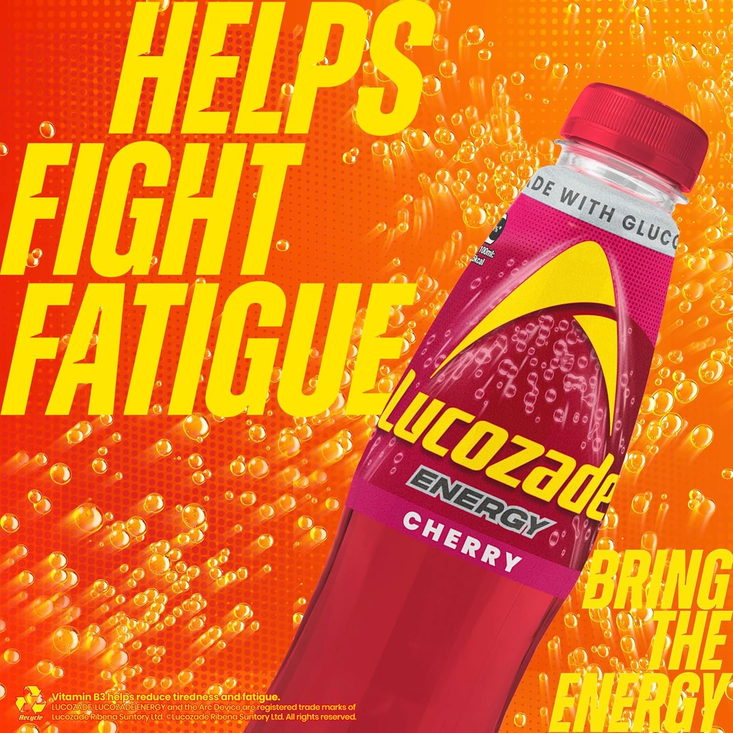 Our refreshing Lucozade Energy is bursting with sparkling flavour. With Glucose and Vitamin B3 to help reduce tiredness, Lucozade Energy helps you get through your day!