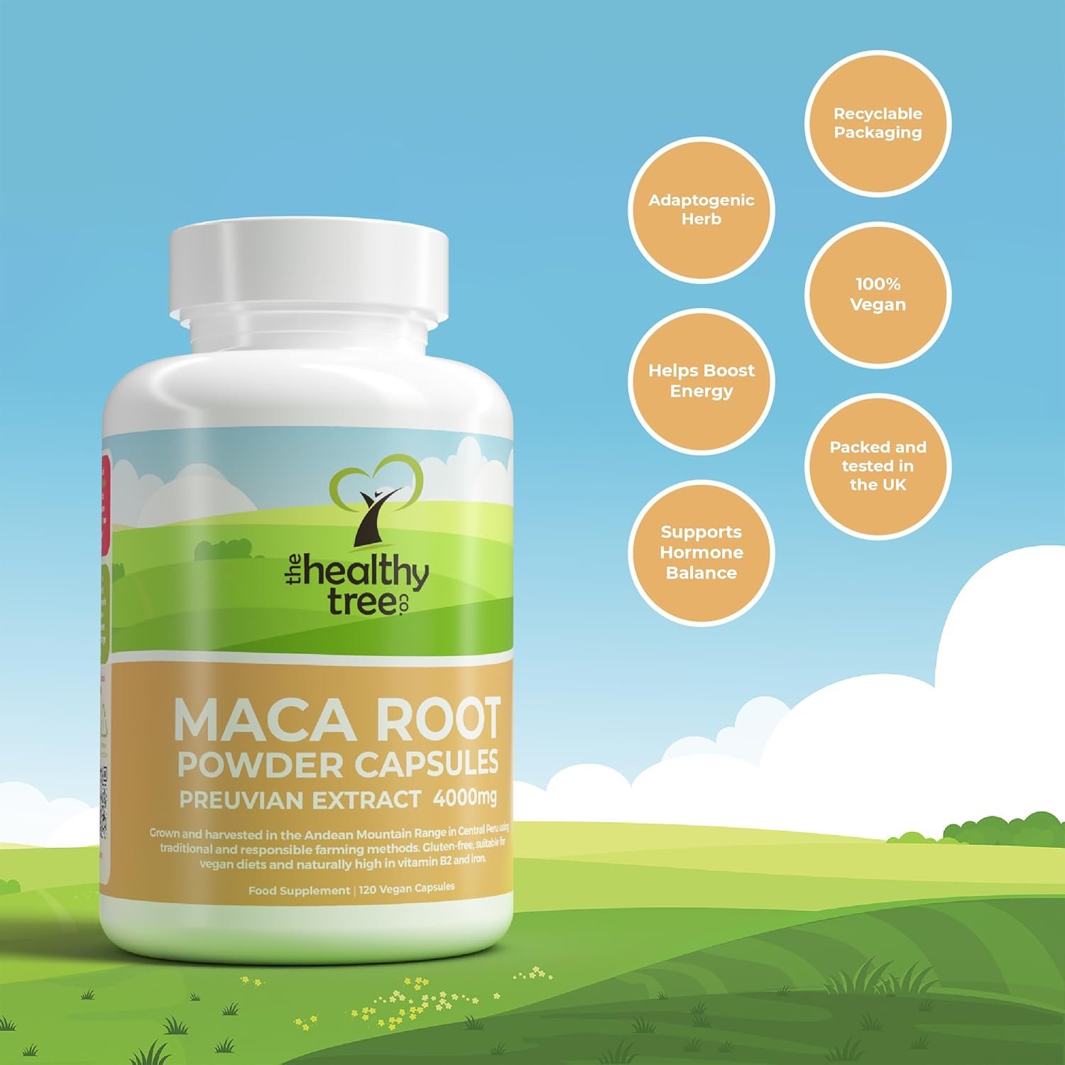 Maca Capsules by TheHealthyTree Company – High Strength 4000mg Extract per Capsule for Men and Women – 120 Vegan Maca Root Powder Tablets