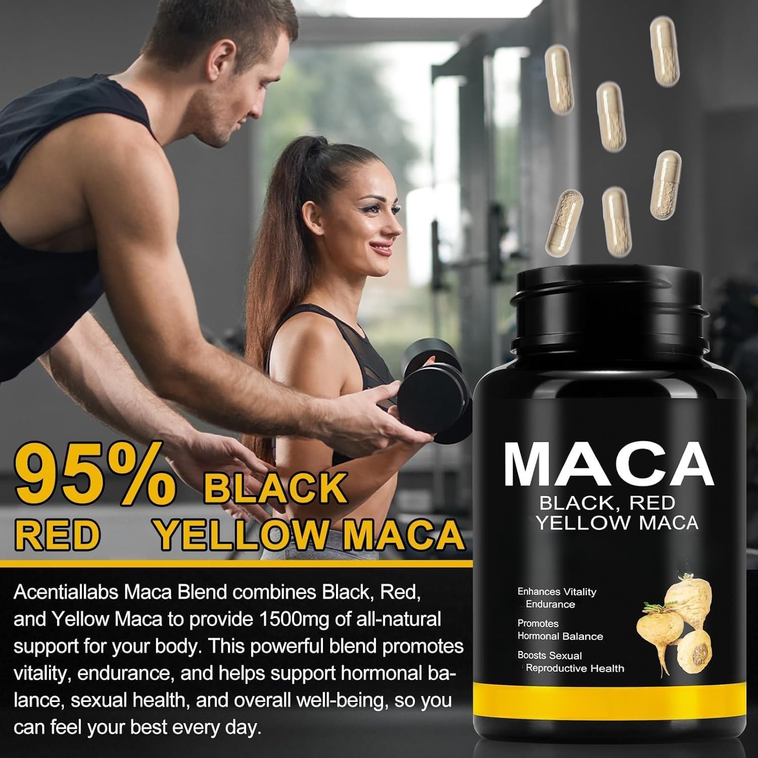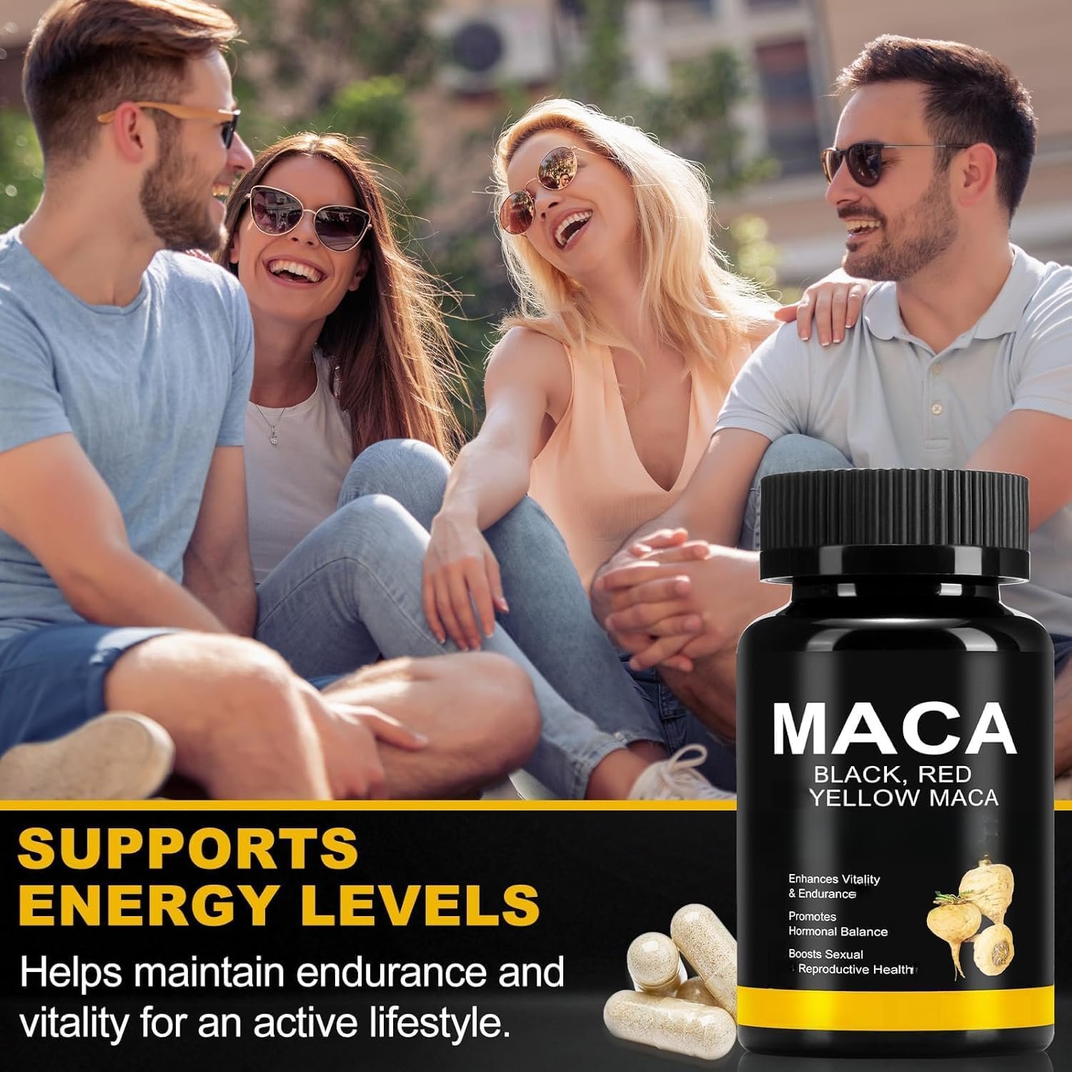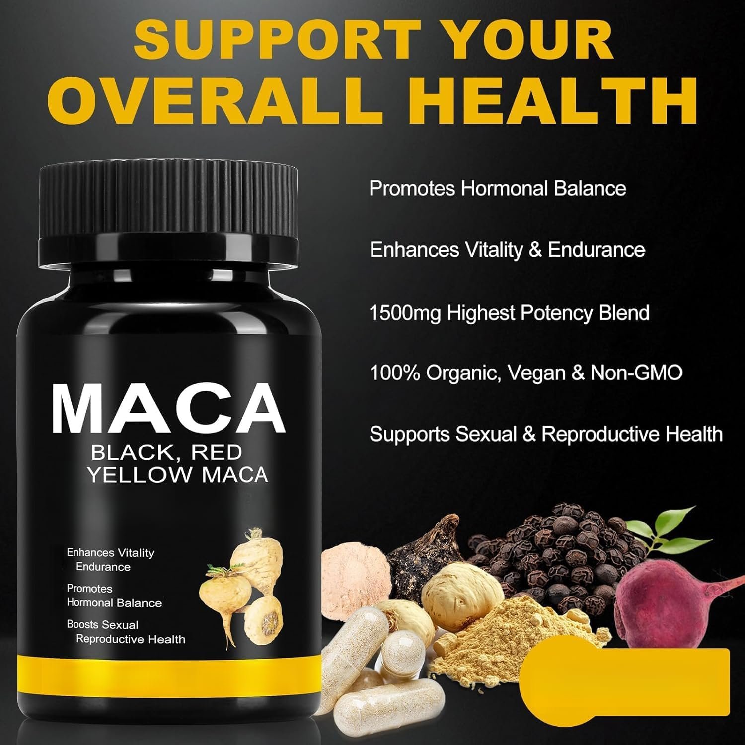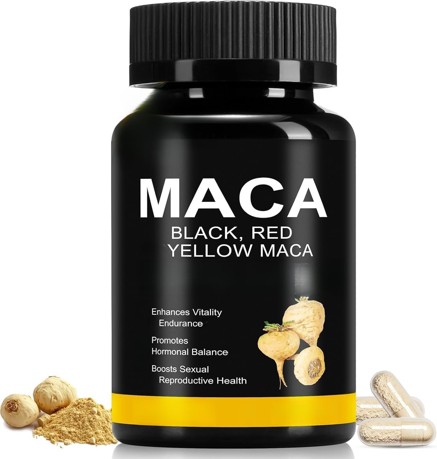Maca Root Powder Capsules with Black Red Yellow Peruvian Maca Root Extract Supplement for Men and Women(60 Vegan Capsules)