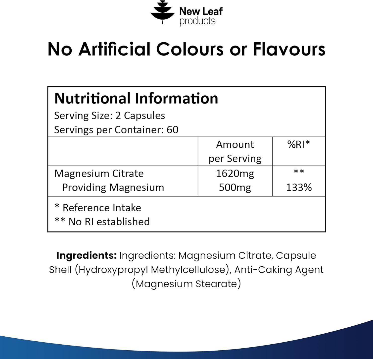 HIGH ABSORPTION – New Leaf magnesium capsules contains 1620mg of Magnesium Citrate and 500mg of Elemental Magnesium (the most bioavailable form of magnesium) per serving of 2 easy to swallow capsules. Each bottle is supplied with 120 easy-to-swallow vegan capsules that will last for 2 months.