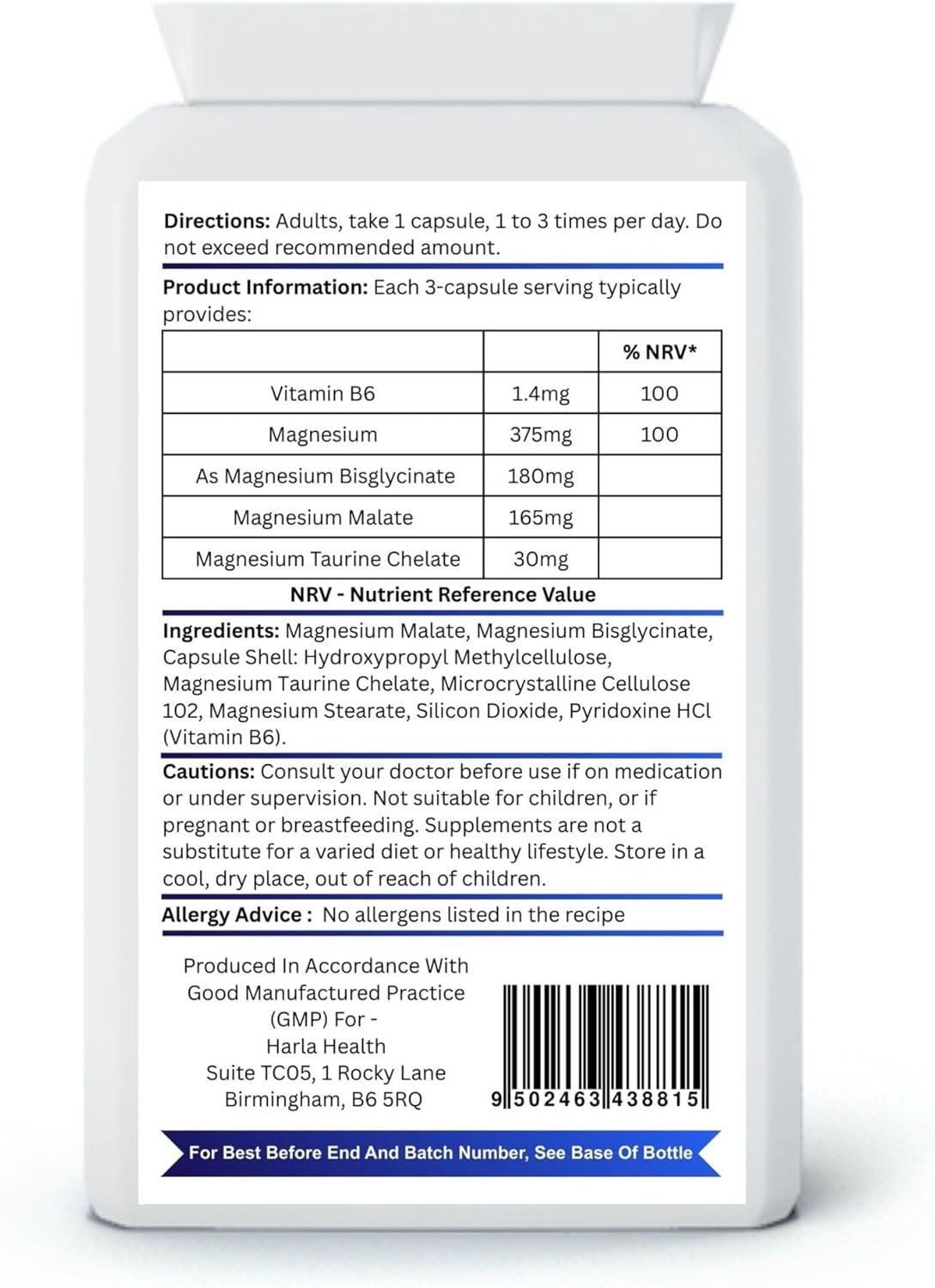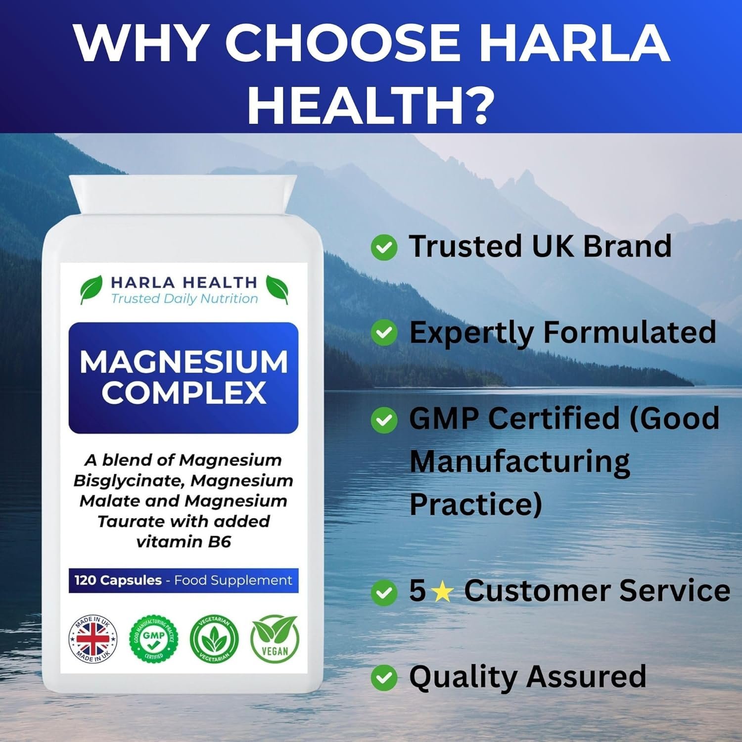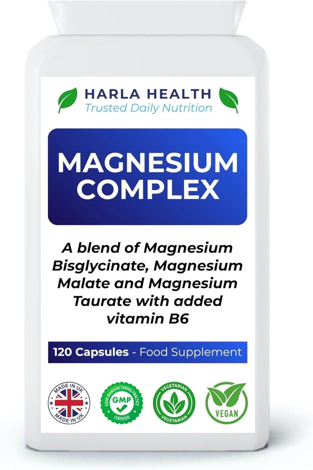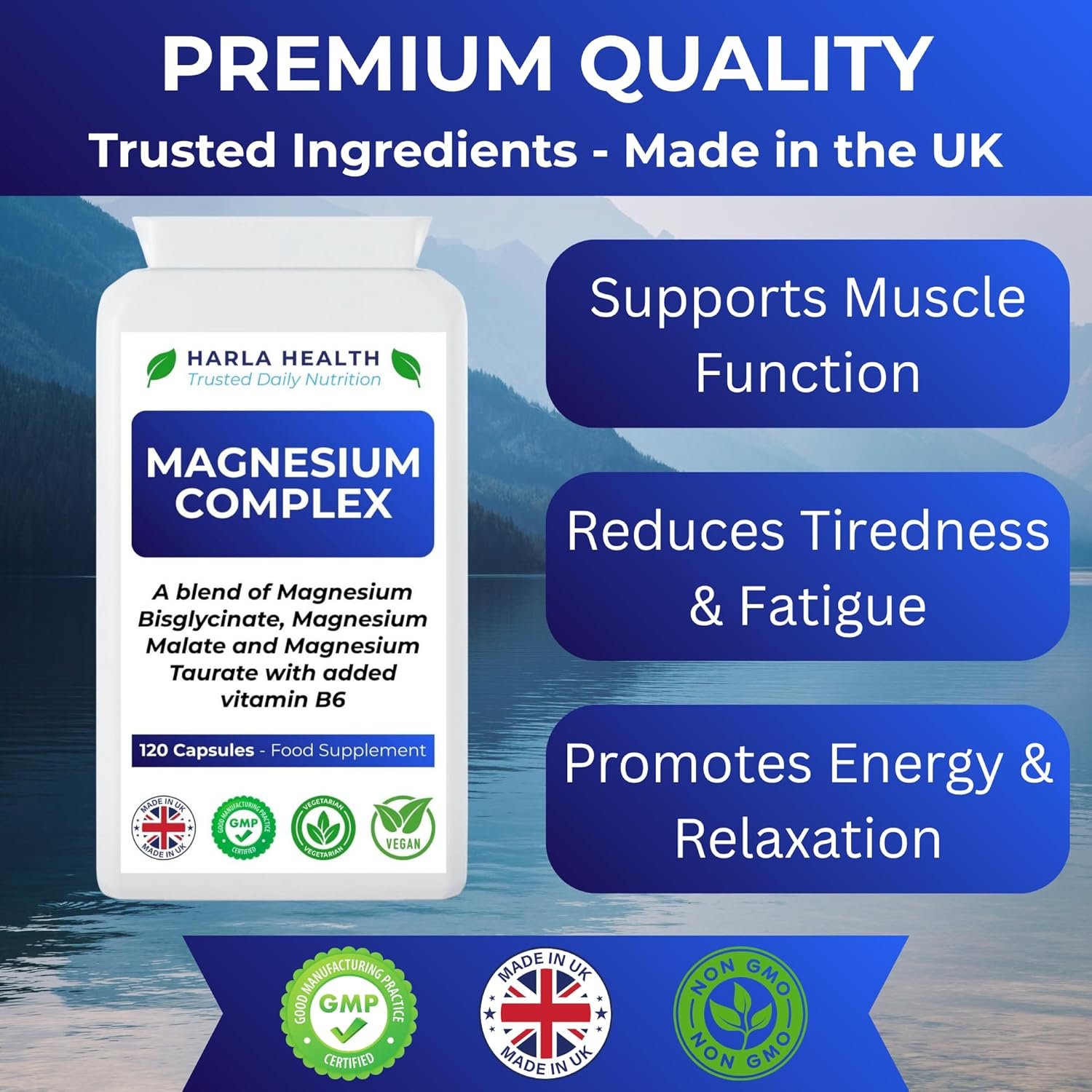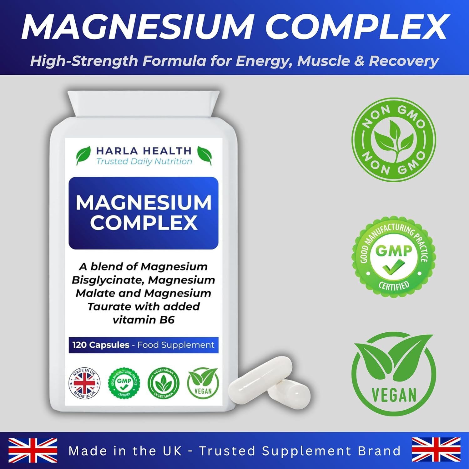 Magnesium Complex – Bisglycinate, Malate & Taurate with Vitamin B6 – 120 Vegan Capsules – High Absorption Magnesium Supplement for Energy, Muscle Function & Sleep Support