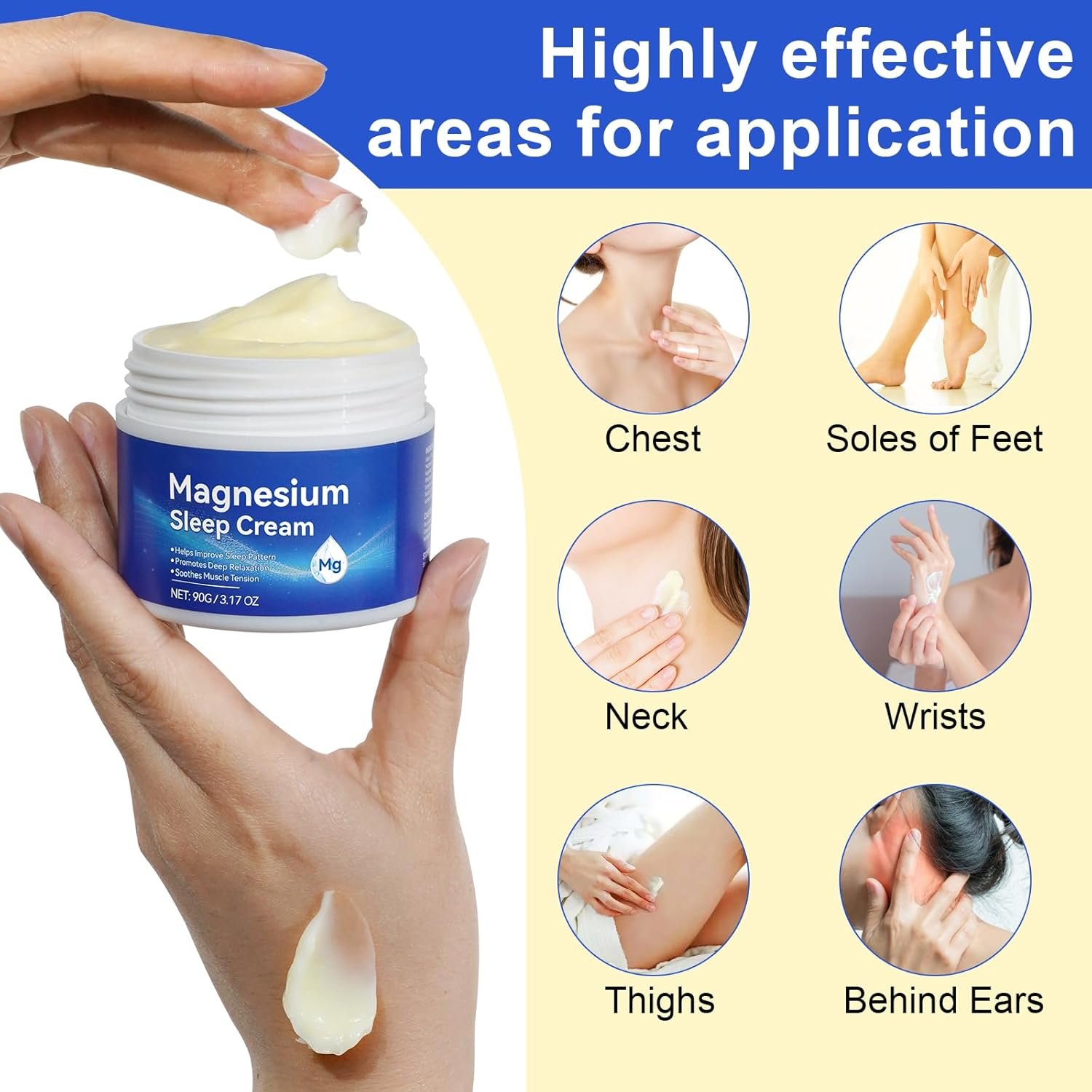 Magnesium Cream, Magnesium for Muscle Relaxation & Sleep Support, Natural Magnesium Cream, Moisturizing Body & Skin, 90g
