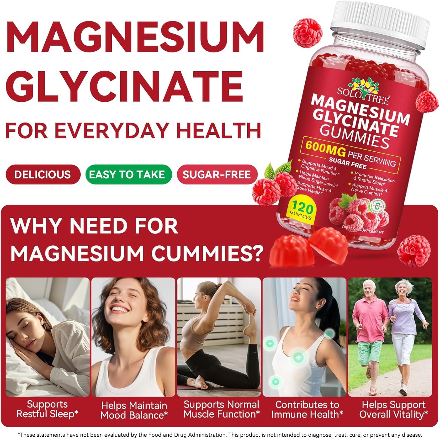 Magnesium Glycinate Gummies, Magnesium Gummies for Kids & Adults, Sleep, Calm & Relaxation Support, Muscle & Energy Boost, 120 Vegan Gummy Supplement, 2 Month Supply