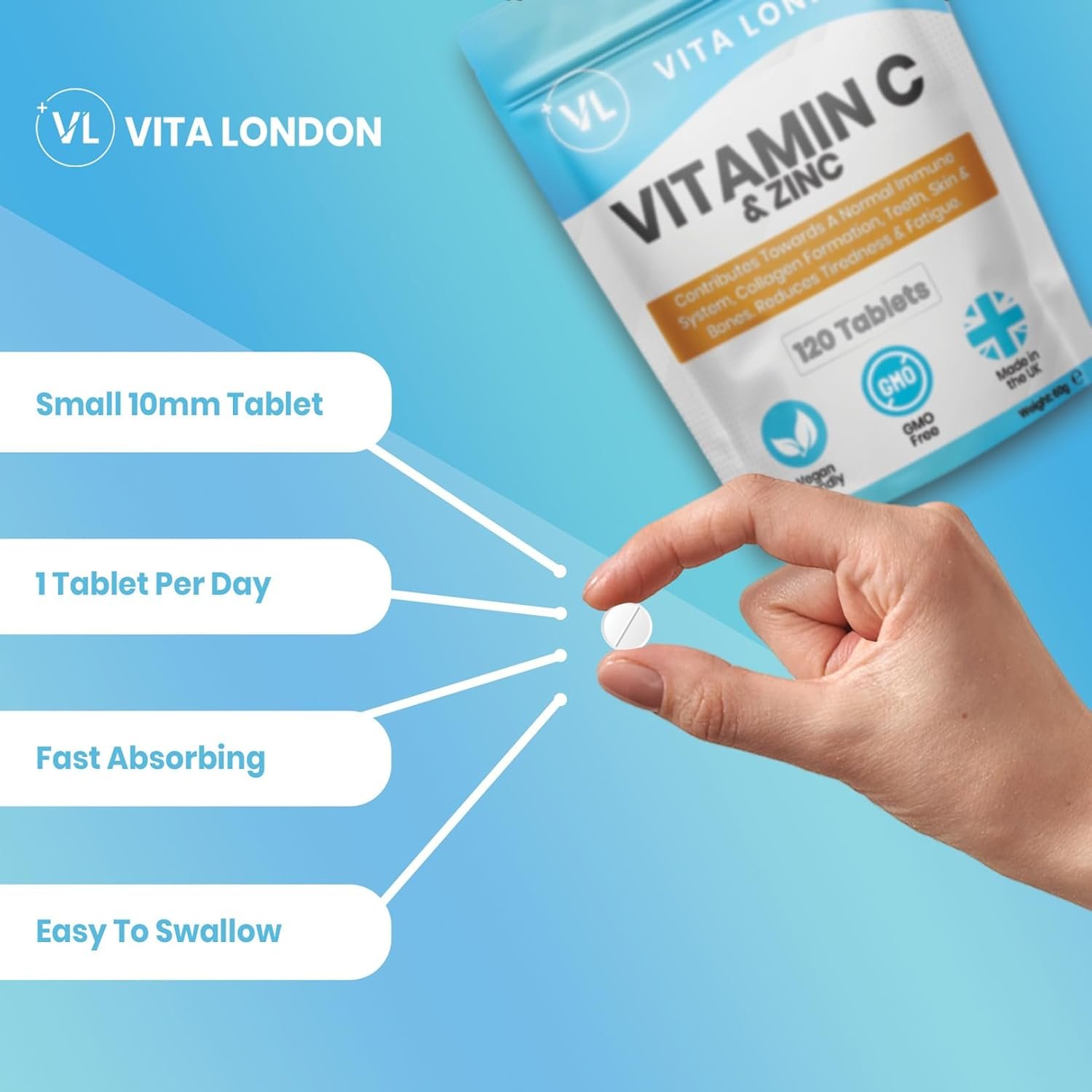 VITAMIN C & ZINC: Vitamin C & Zinc Tablets contribute towards a normal Immune System, Collagen Formation, Teeth, Skin & Bones. Reduces Tiredness & Fatigue. Each pack contains 120 tablets (120 daily servings)