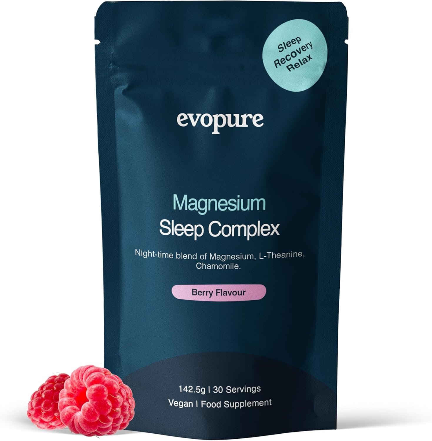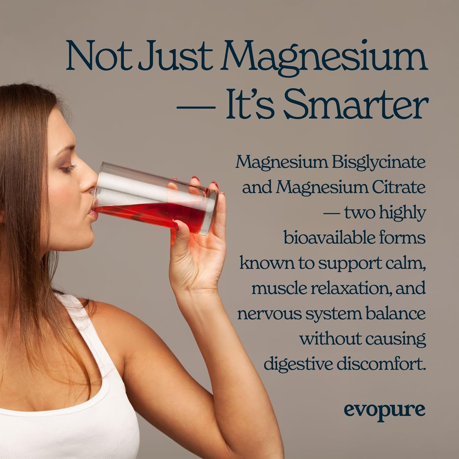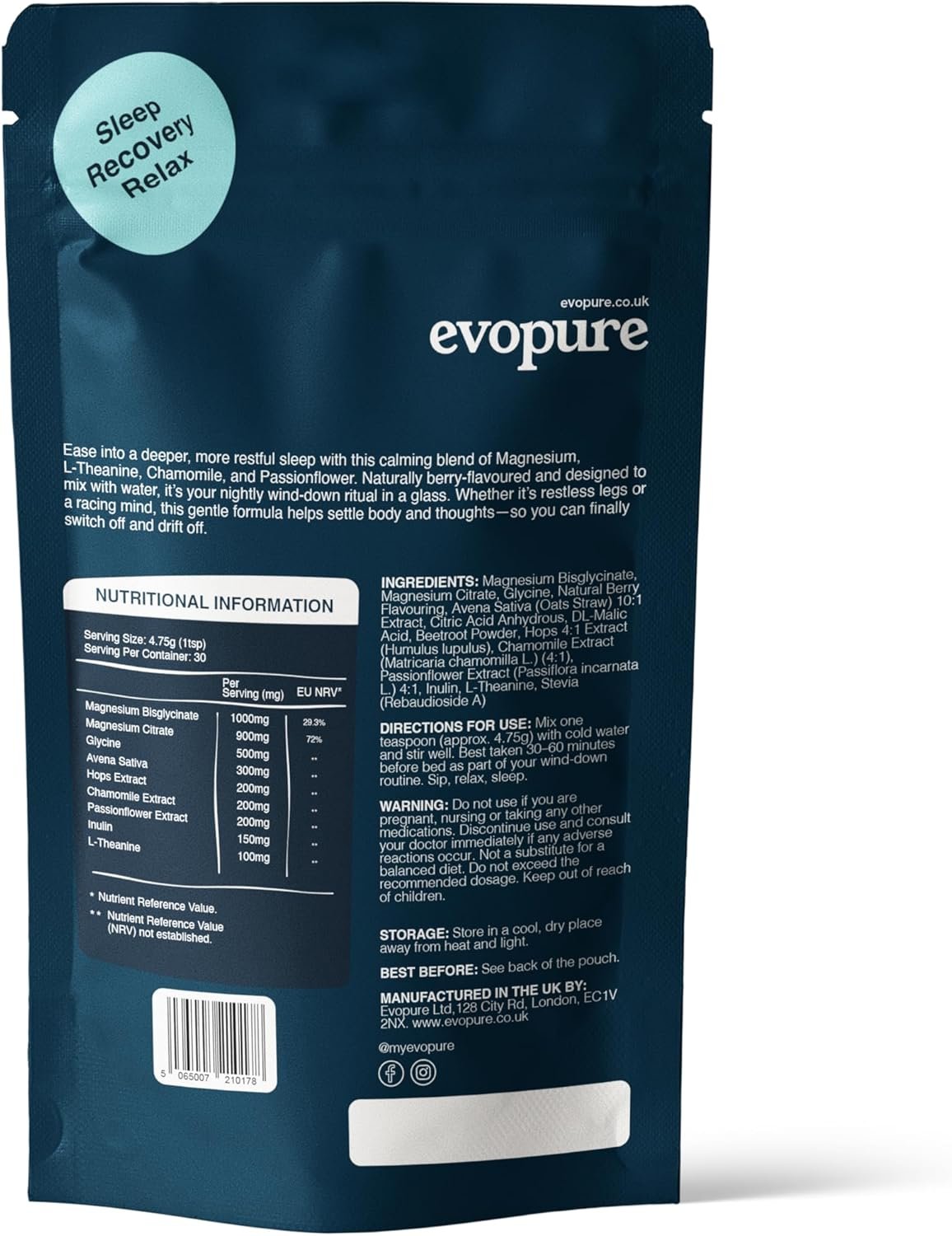 Magnesium Powder for Sleep – High Absorption Magnesium Citrate & Glycinate with L-Theanine, Chamomile & Passionflower – Natural Sleep Aid & Relaxation Supplement – 30 Servings – by Evopure