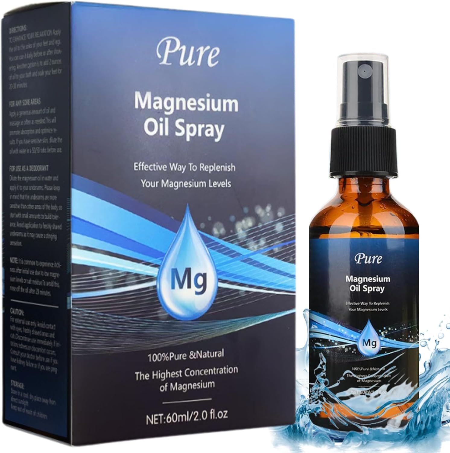【Versatile Mineral Spray System】Multi-use magnesium oil spray functions as a daily topical booster or targeted application. The ancient minerals magnesium oil formula works as a base for DIY creams or bath soaks. Portable 60ml bottle fits in gym bags/work desks. Organic magnesium oil standards ensure purity (No additives).