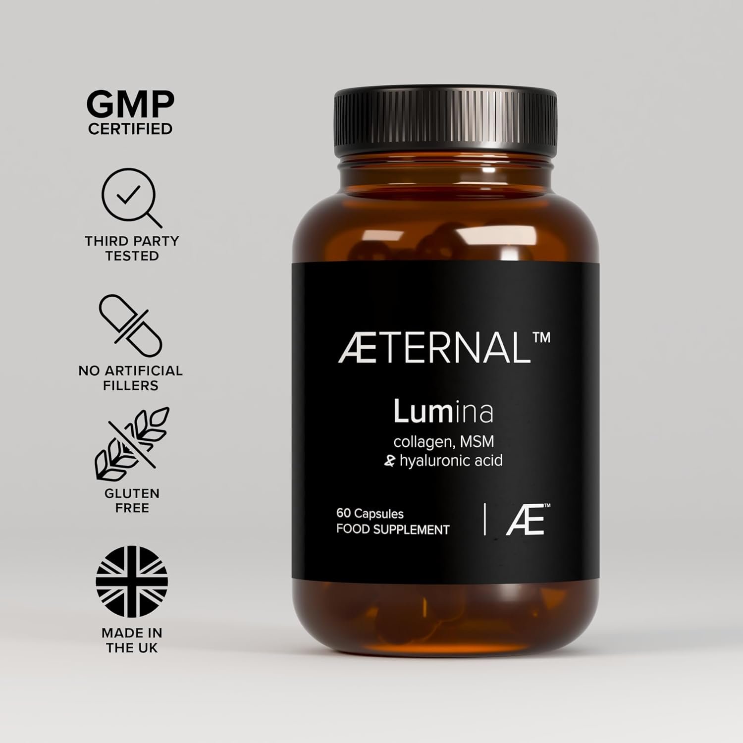 Marine Collagen Peptides with MSM & Hyaluronic Acid | Skin Hydration Firmness & Glow | Anti Ageing Beauty Formula with Joint Support | Non GMO Supplement | 60 Capsules | Made in UK | AETERNAL