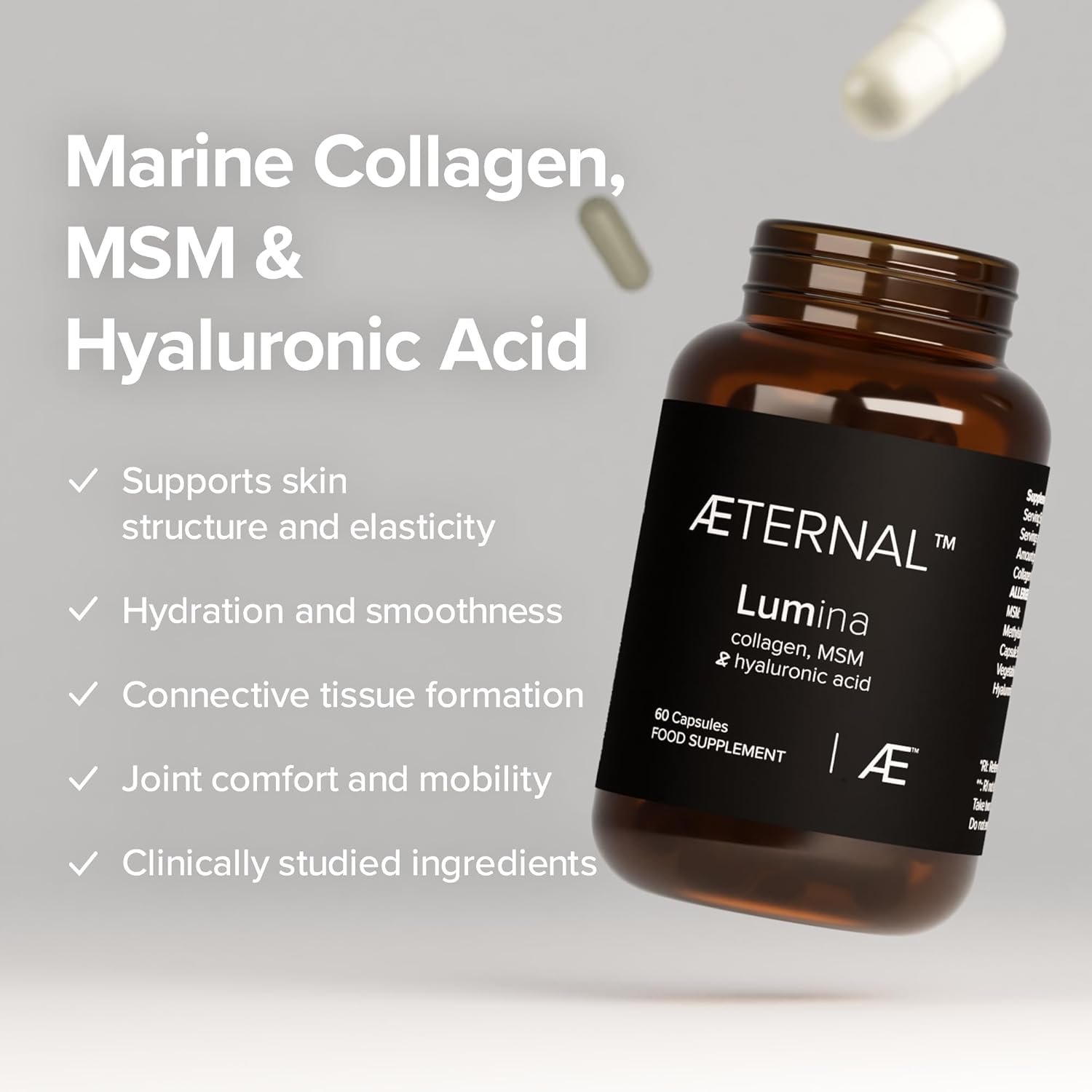 COMPLETE BEAUTY + JOINT FORMULA | Lumina combines collagen, MSM, and hyaluronic acid in balanced synergy – designed to nourish skin from within and support mobility and flexibility.