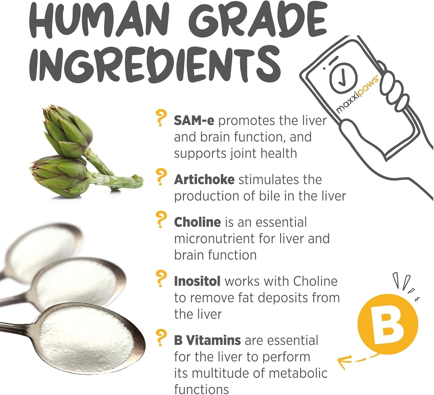 ADDITIONAL NATURAL INGREDIENTS: Artichoke can help to stimulate the production of bile in the liver. B Vitamins aid liver metabolic function & are recommended for liver problems. Choline & Inositol assist in removing liver fatty deposits.