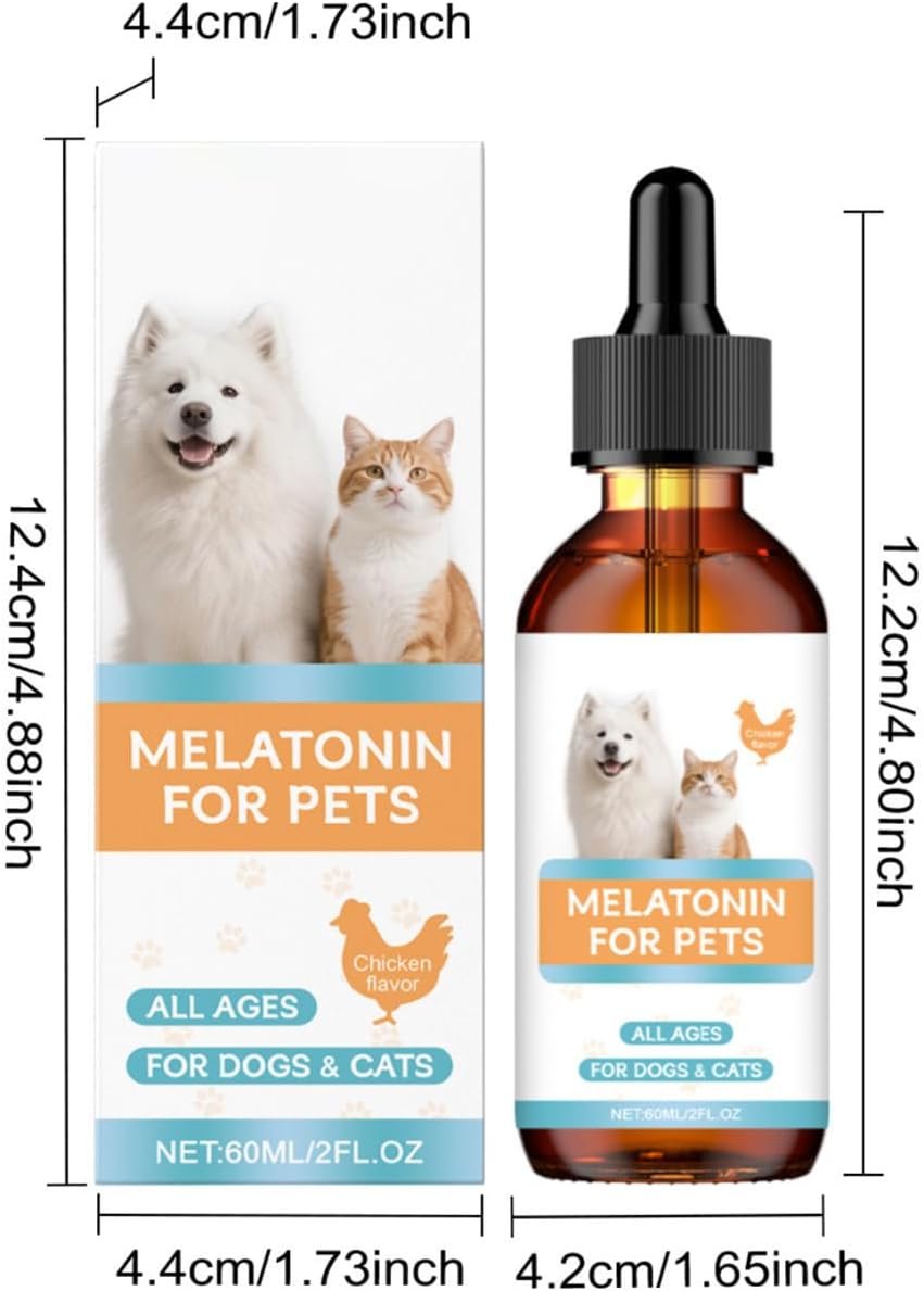 Melatonins for Dogs 60 Ml | Liquid Melatonins with a Quantitative Dropper | Sleep Aid Drops for Cat | Odorless & Transparent | Supports Relaxation Dogs & Cat, Helps Restful Sleep