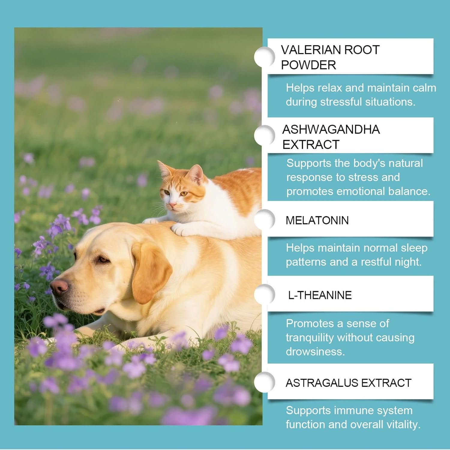 Suitable for Multi-Pets: Developed to accommodate diverse pet needs, this sedative provides accurate dosing based on individual weights, ensuring its suitability for long-term use in multi-pet homes, helping reduce tension and foster relaxation when pets face triggers such as loud noises or unfamiliar visitors