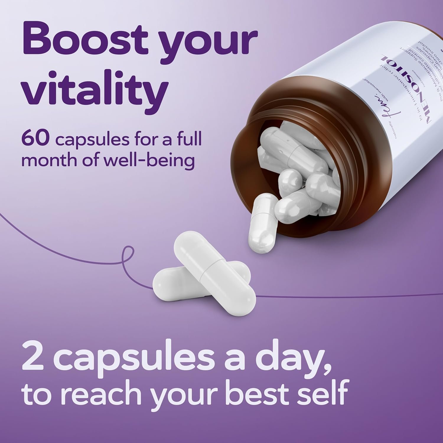 Inositol FEM Menopause combines 19 high-concentration ingredients, required to balance the female cycle, into just 2 capsules to simplify your daily routine and alleviate your menopausal symptoms.