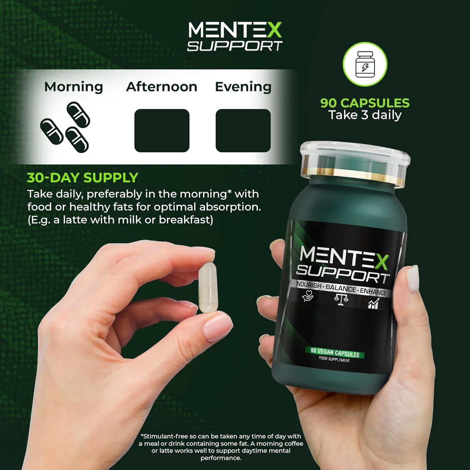 GMP-Certified Quality: 90 vegan capsules, soy- and gluten-free, produced in a GMP-certified facility with third-party testing for purity. Take three daily with a meal; stimulant-free formula stacks cleanly with coffee.