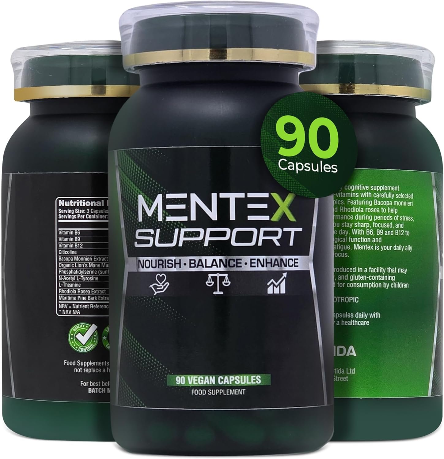 Mentex Nootropics Brain Support Supplement – Brain Supplement with Lion’s Mane, Citicoline, Rhodiola & Bacopa – Cognitive Support for Focus, Memory & Mental Clarity – 90 Vegan Capsules