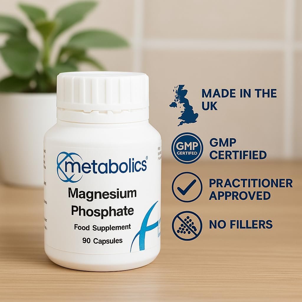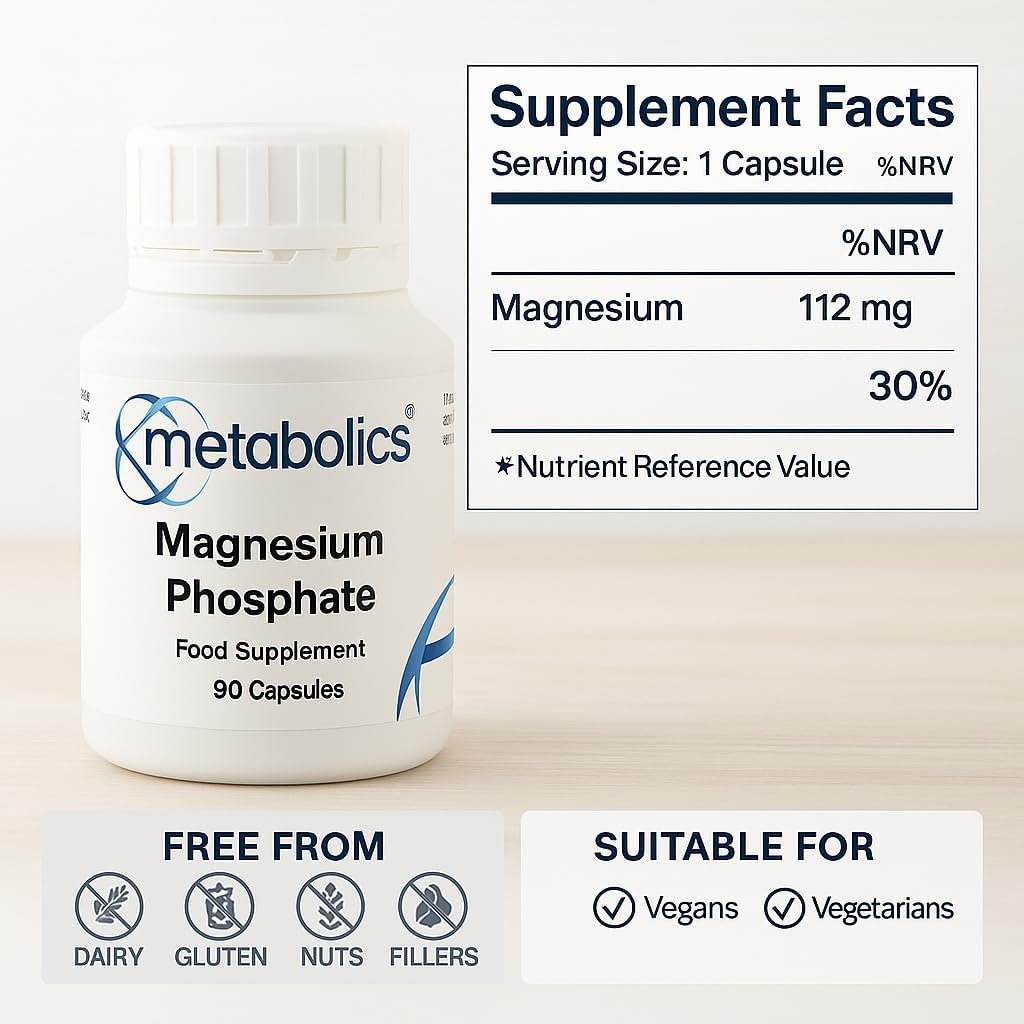 Metabolics Magnesium Phosphate 90 Capsules – 112 mg Phosphate Supplement – Supports Energy, Bones & Muscles, Vegetarian, UK Made