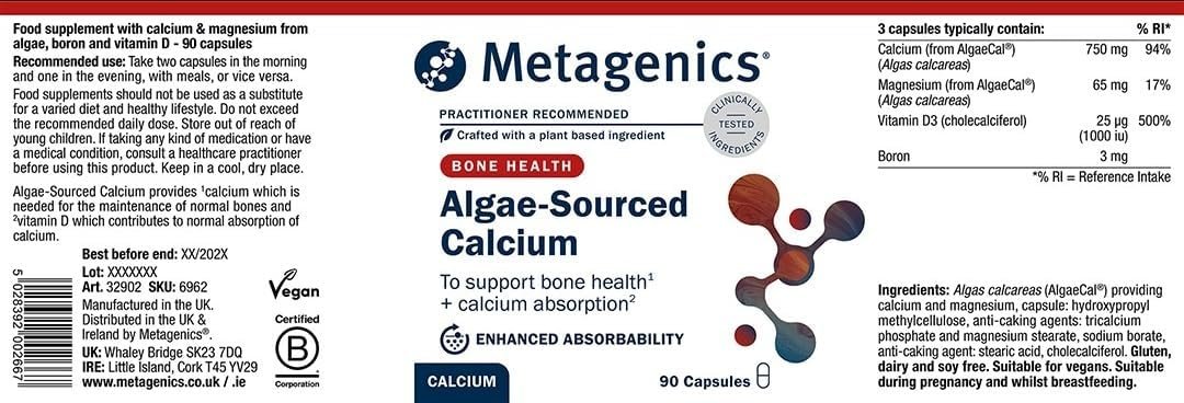 Metagenics Algae-Sourced Calcium – for Bone Support – with Vitamin D3, Magnesium – Vegan, Non-GMO – 90 Capsules