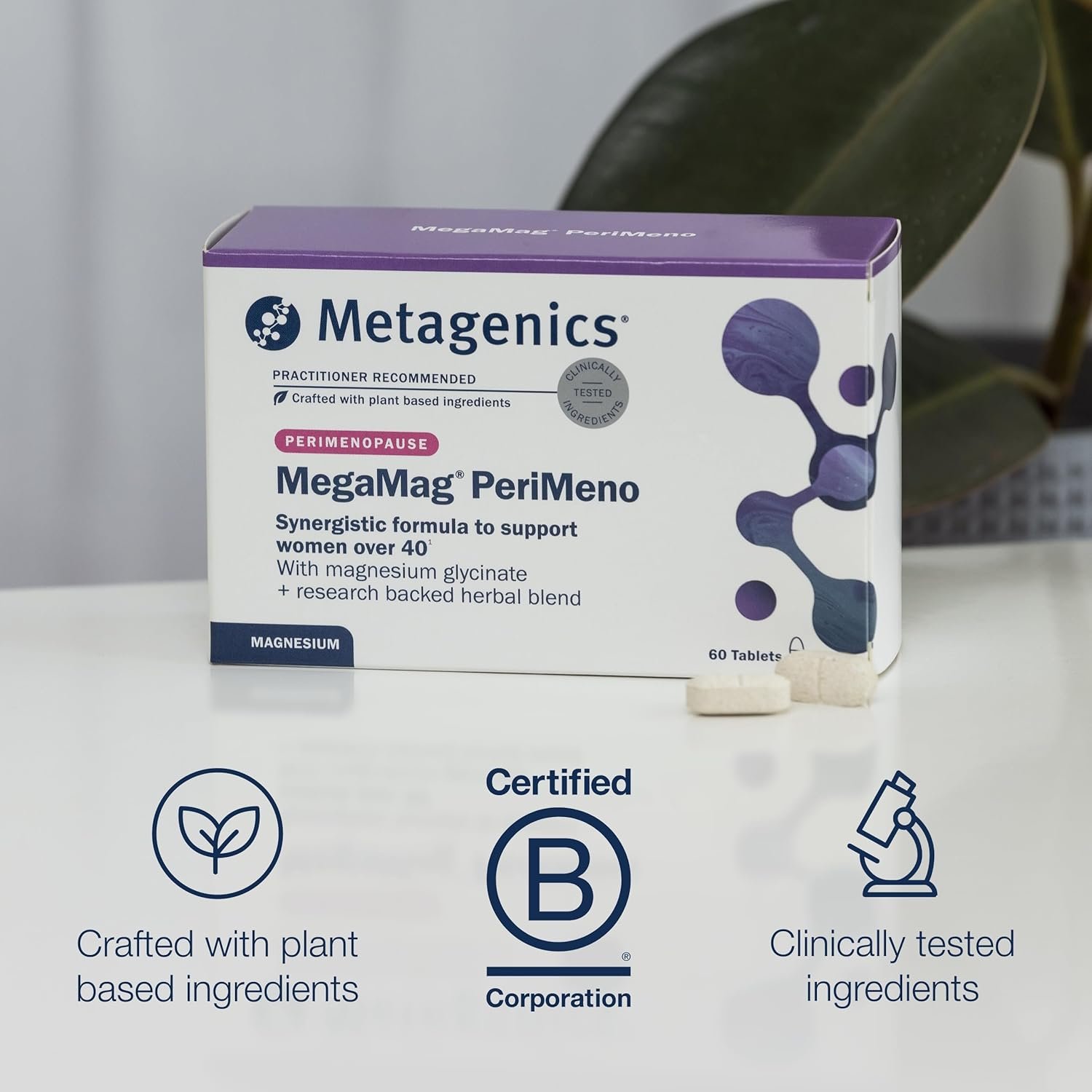 Metagenics MegaMag PeriMeno – with Vitamin B6 & B12, Magnesium Glycinate, Sage, Ashwagandha and Saffron – 60 Tablets