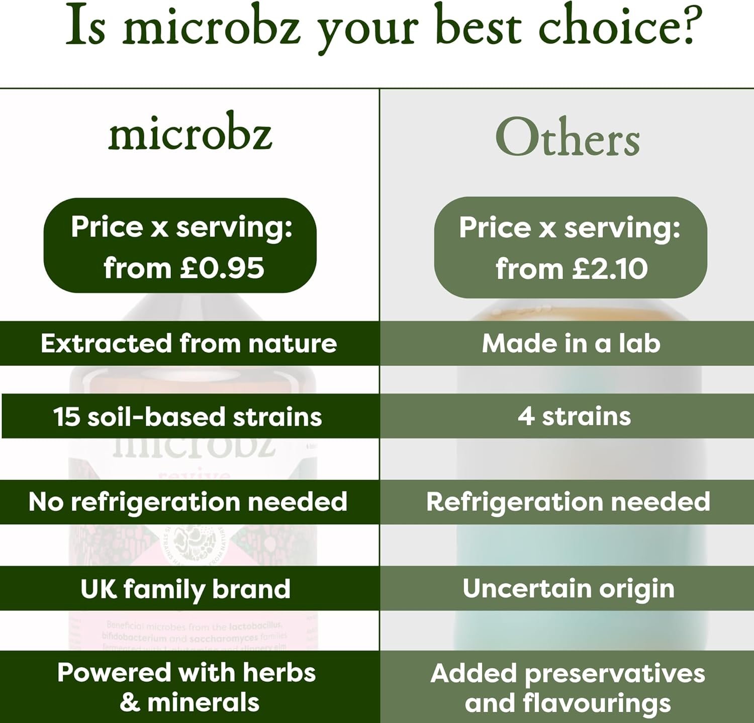 VEGAN, GLUTEN-FREE & ECO-FRIENDLY: Microbz is a UK family-run business producing award-winning bio live cultures right here in the Wiltshire. Free from Gluten, GMOs, wheat, dairy, and sugar. It is packaged in 100% recycled plastic, supporting your health and the planet.