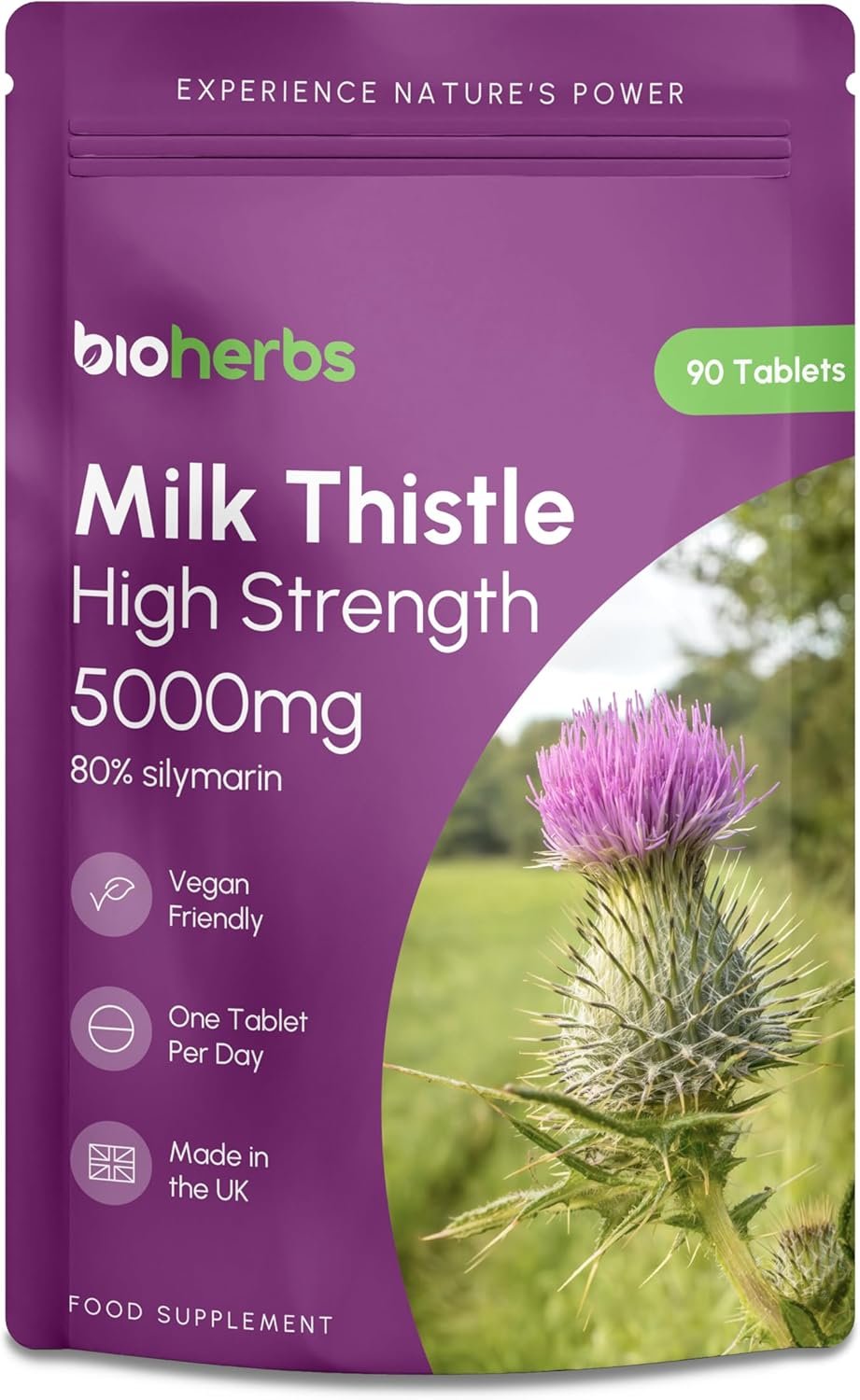 Milk Thistle High Strength 5000mg – 80% Silymarin (125mg Extract) by BioHerbs | 90 One-Per-Day Milk Thistle Tablets (3-Month Supply)
