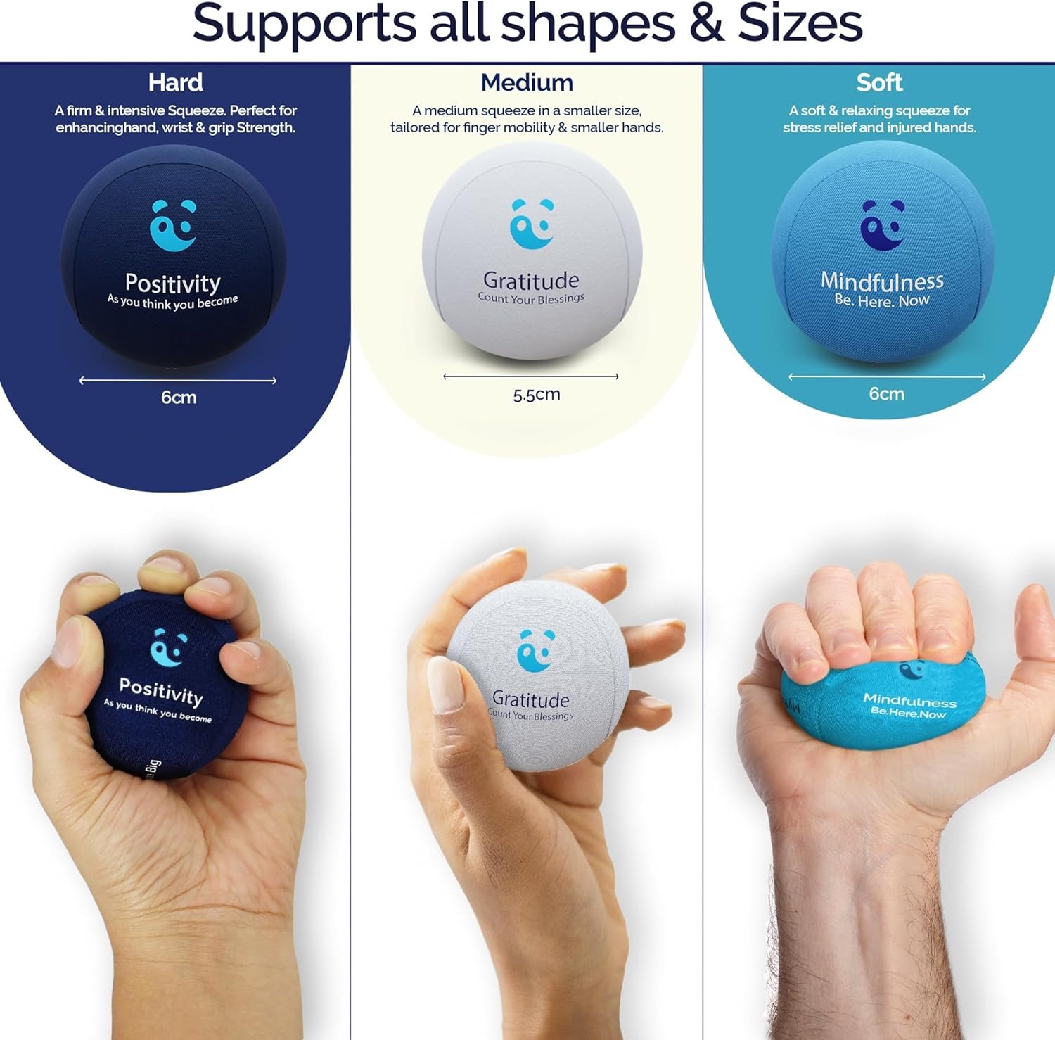 Mind & Body Stress Balls for Adults – Triple Density Squeeze Balls for Hand Therapy & Grip Strengthening – Stress & Anxiety Relief – Physical Therapy Support – Soft, Medium, Hard Gel Core