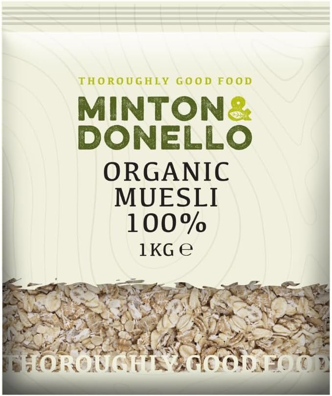 Start your day with the wholesome goodness of Minton & Donello Organic Muesli 1kg. Made from 100% organic ingredients, this premium blend combines porridge oats, jumbo oats, wheat flakes, rye flakes, barley flakes, sultanas, raisins, sunflower seeds, apricots, dates, hazelnuts, almonds, and walnuts. Carefully selected to deliver a balance of taste and nutrition, our muesli is rich in fibre, protein, omega-3 fatty acids, and antioxidants. Versatile and delicious, it can be enjoyed as a classic breakfast with milk or yoghurt, used to make homemade muesli bars, or added to smoothies and baked goods. Whether you’re seeking a healthy morning meal or a nutritious snack option, Minton & Donello Organic Muesli is your ideal choice. Packaged in a generous 1kg bag, our muesli stays fresh longer and offers exceptional value for your pantry. Enjoy the natural flavours and health benefits of this nutrient-rich blend, crafted to support your active and balanced lifestyle. Discover why Minton & Donello Organic Muesli is a favourite for health-conscious individuals and families alike.