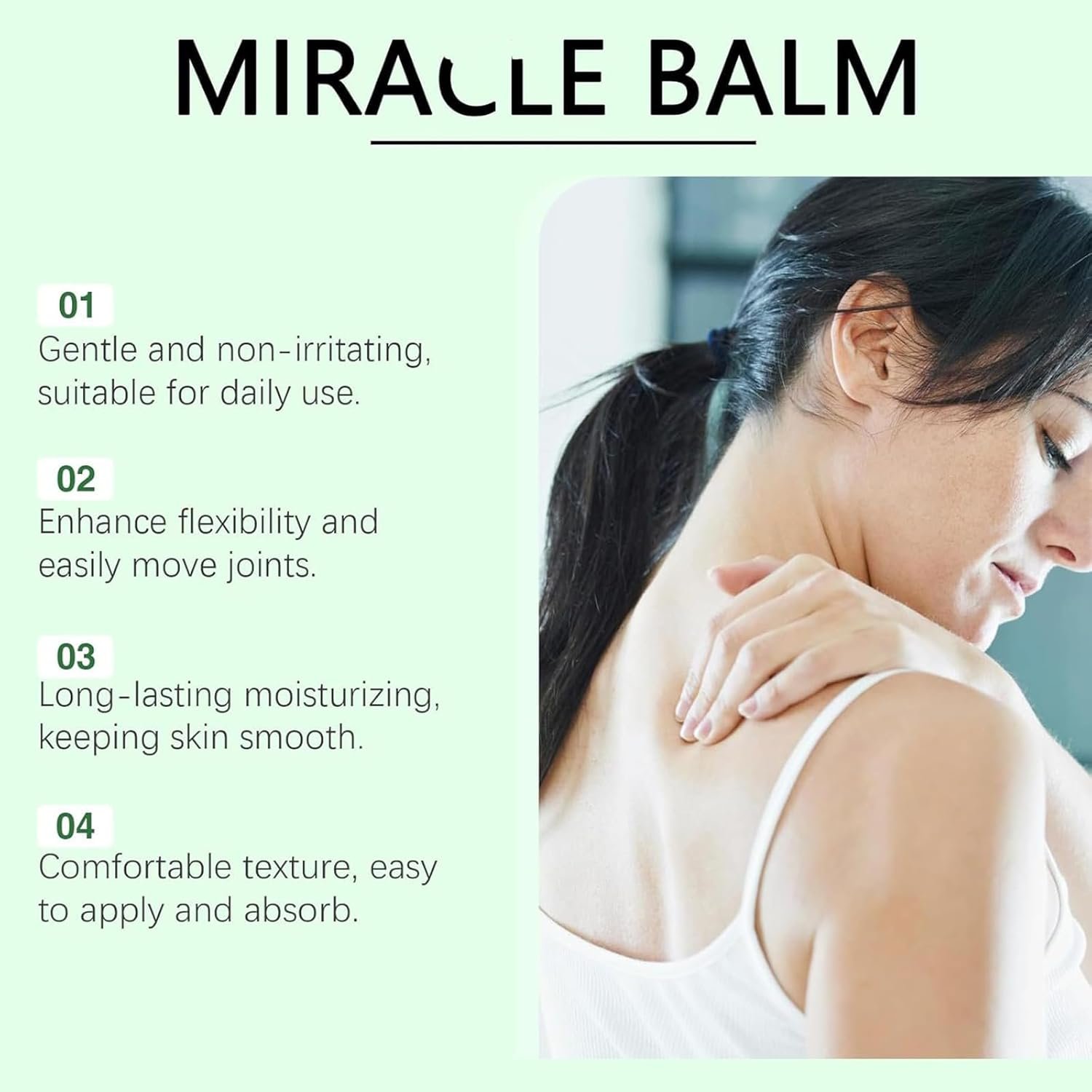 【Miracle Balm】Infused with plant extracts, this body cream delivers a calming and refreshing sensation to the skin, helping to relax tired muscles while providing long-lasting comfort.The lightweight, non-greasy formula absorbs quickly, leaving your skin feeling soft, smooth, and rejuvenated.