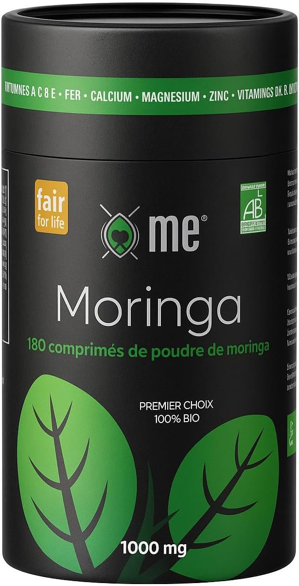 Moringa Bio de ME – 180 Tablets 1000 mg – 180 g – Premium Quality – Vitality – Energy – Skin – Multivitamins – Multiminerals – Proteins – Anti-inflammatory – Antioxidants