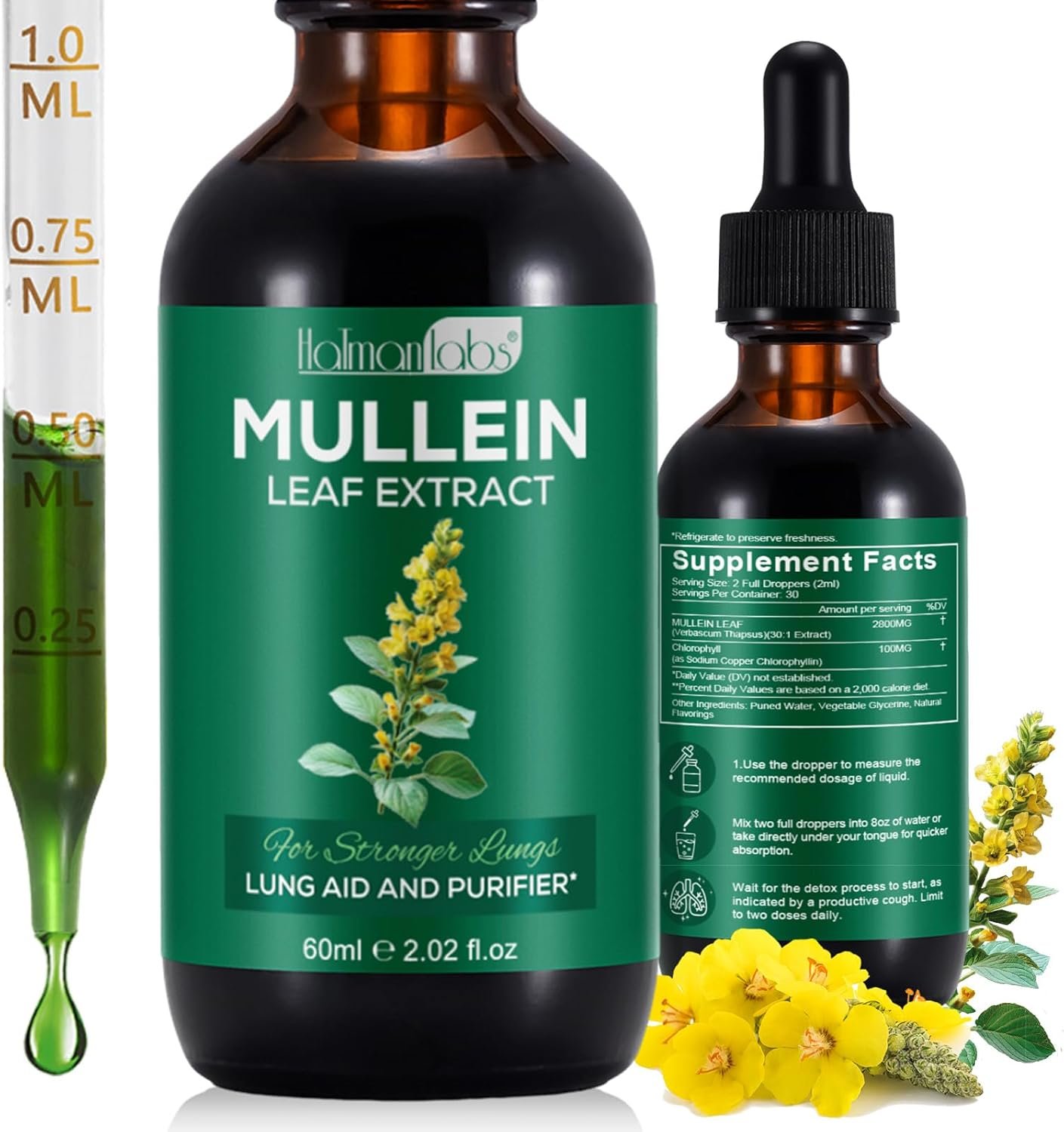 Mullein Drops for Lungs, Mullein Leaf Extract Supplement, Natural Mullein Herbal Supplements, Mullein Leaf Extract for Lung Cleanse and Respiratory Support – 2.02 fl oz
