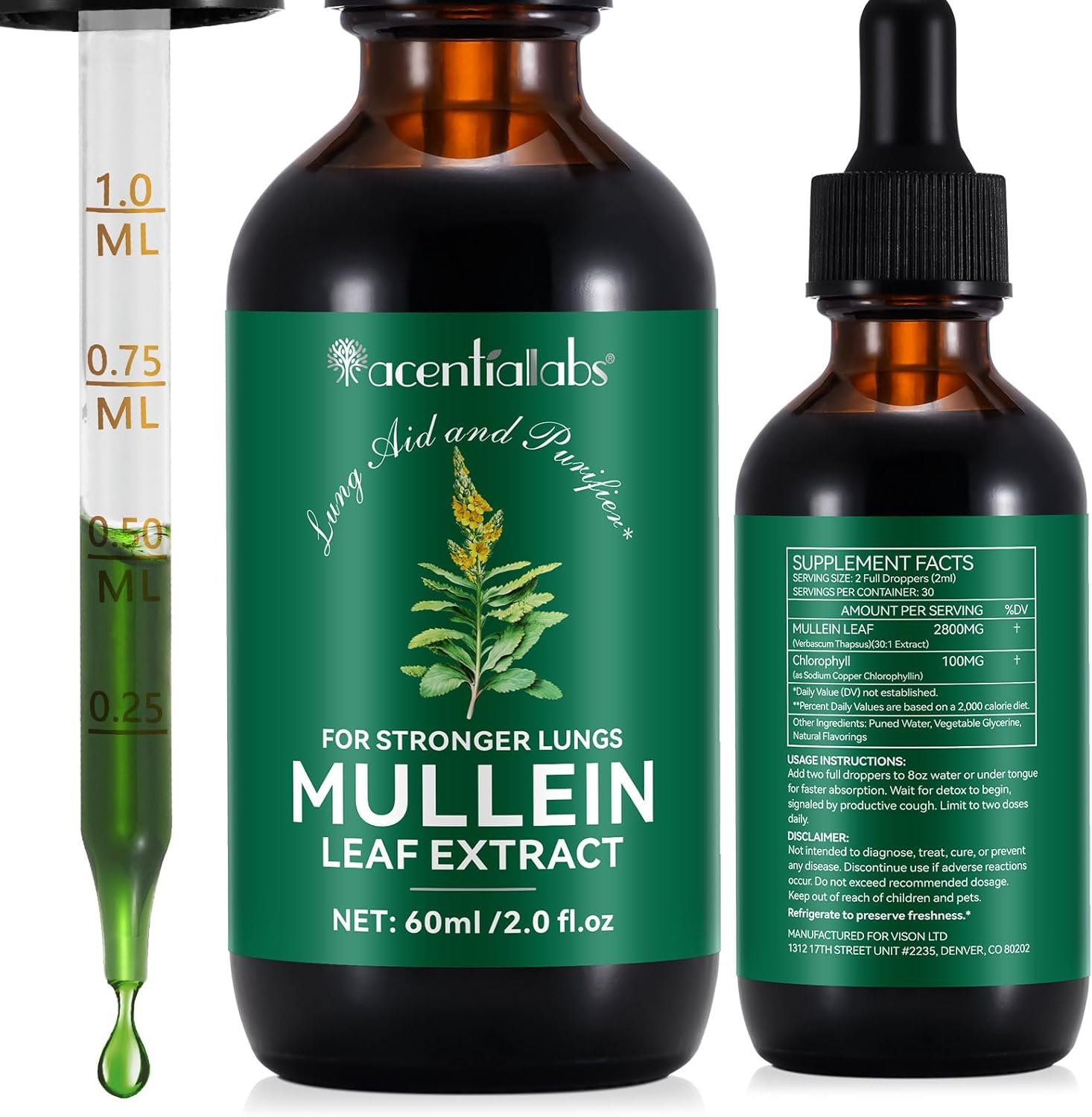 Premium Quality Formula: This Mullein is made with superior quality, a highly potent formula based on Natural mullein extract VEGAN, .take 2 full droppers—-1 MONTH SUPPLY