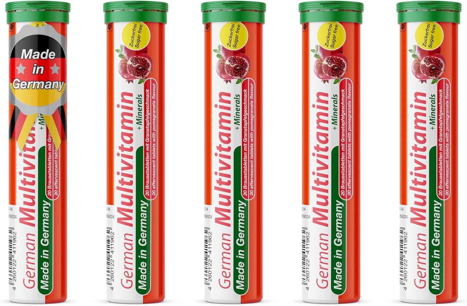 Multivitamin + Minerals – 5 x 20 effervescent Tablets – Pomegranate Flavor – T&D Pharma German Multivitamin + Minerals – Made in Germany