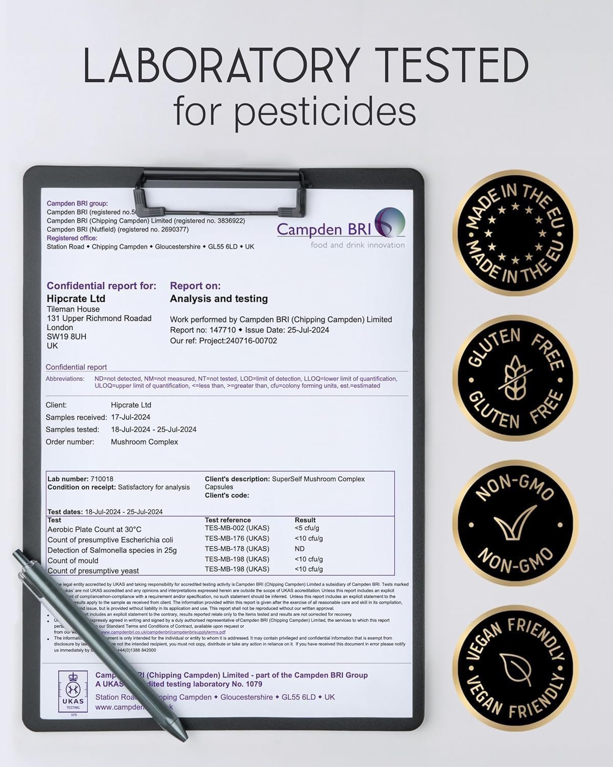 NATURAL & 100% VEGAN – Sustainable harvesting, careful extraction, and thoughtful processing preserve the potency and benefits of each mushroom’s polysaccharides and other active compounds while transforming them into convenient capsules. SuperSelf high-strength mushroom supplements are odourless, tasteless, and easy to swallow, making them an ideal addition to your daily health routine.