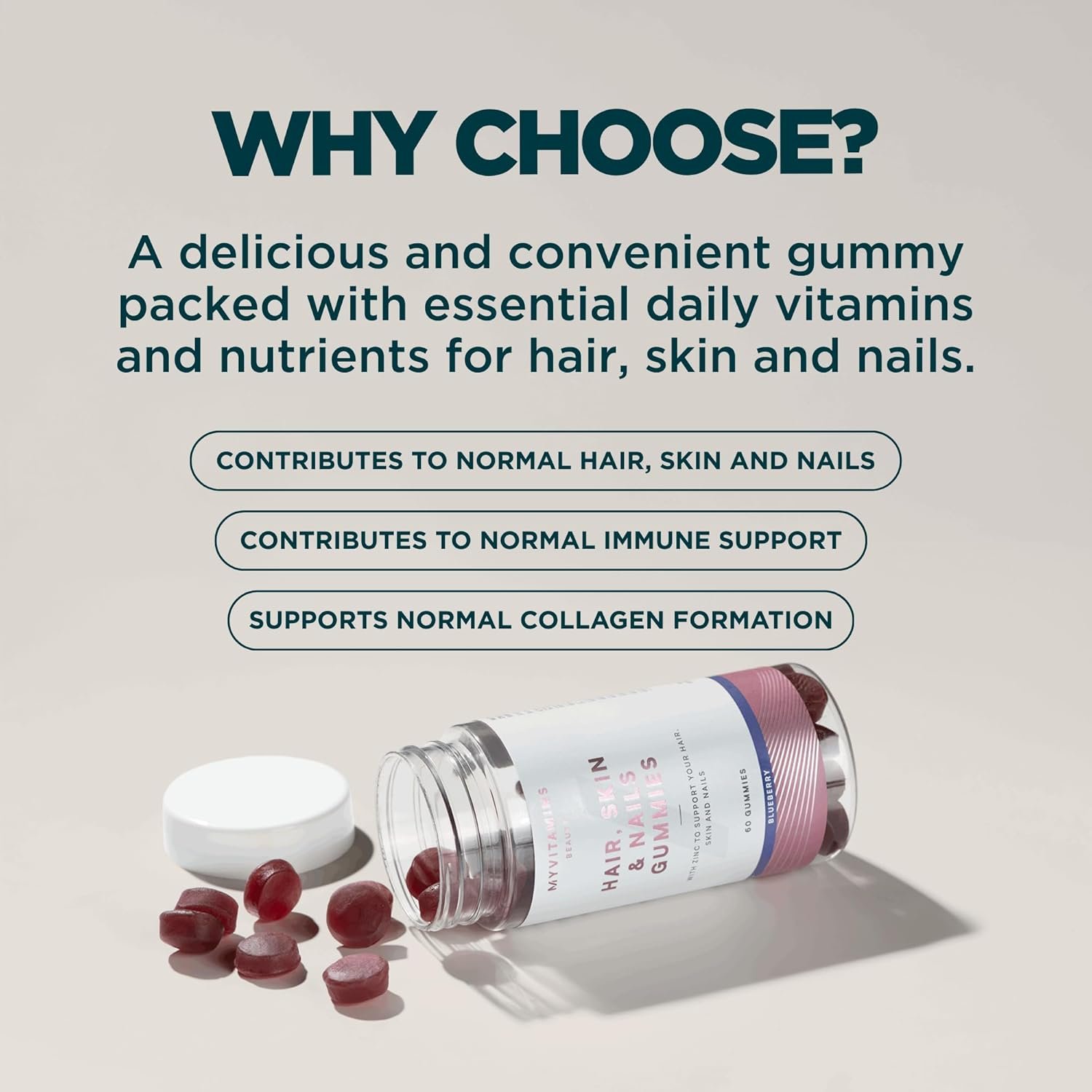 Strawberry-Flavoured Hair Vitamins with Biotin & Zinc: Support hair strength, skin clarity, and nail health with biotin, zinc, and vitamin C—essential beauty nutrients in every tasty gummy.