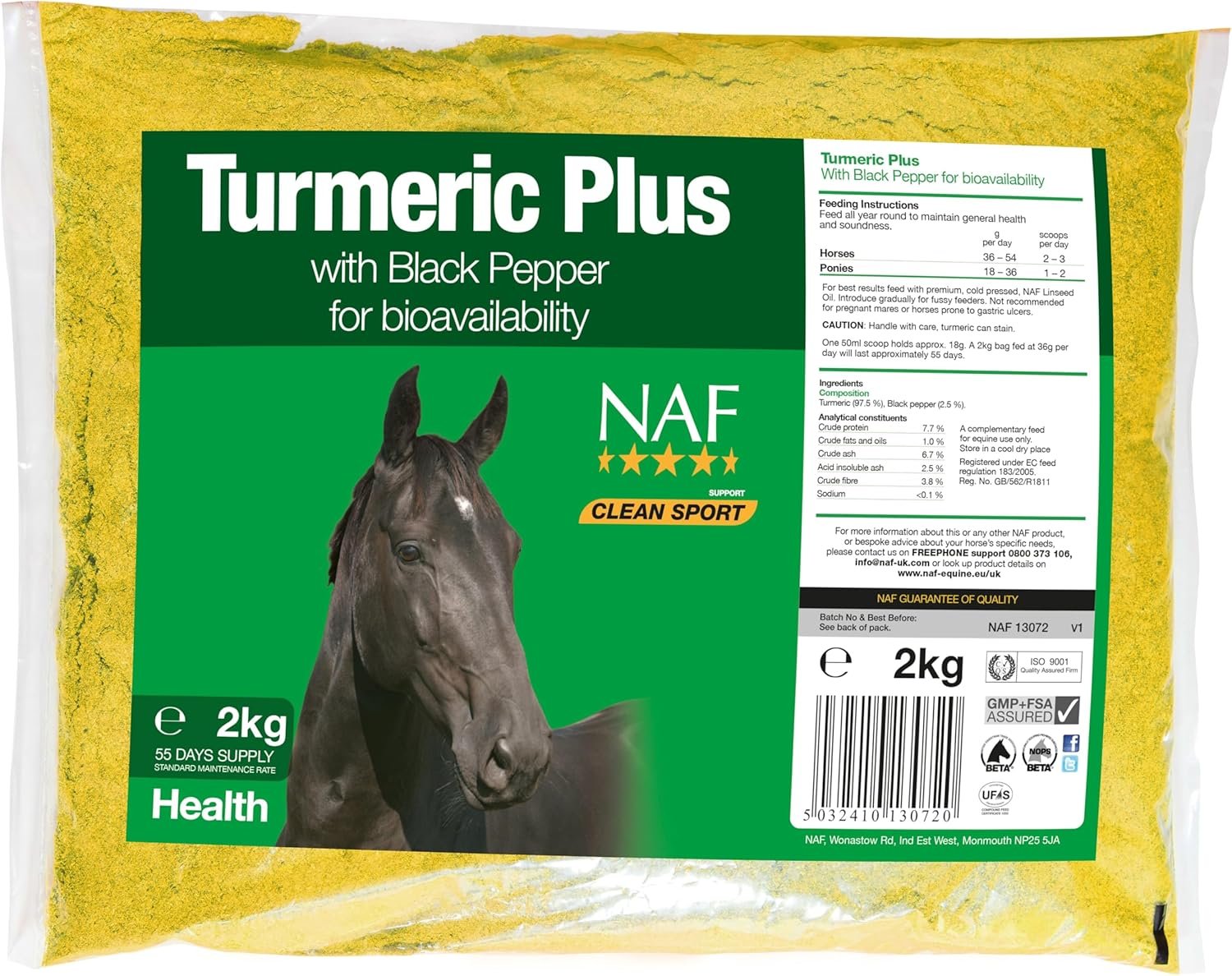 NAF Turmeric Plus for Horses 2kg – Natural Joint, Skin & Digestive Support – With Turmeric, Linseed Oil & Black Pepper – Promotes Comfort, Mobility & General Wellbeing – Easy-to-Feed Supplement