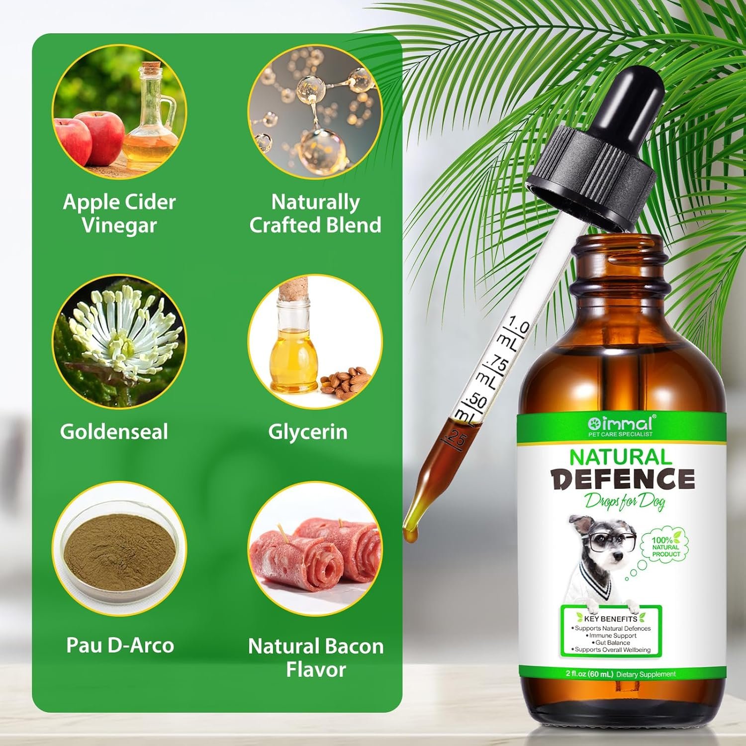 Natural Defence Drops for Dogs,Dog Immune Support Drops | Supports Joint, Digestion, Immunity & Skin Health | For Everyday Vitality | Suitable for All Breeds | 60ml