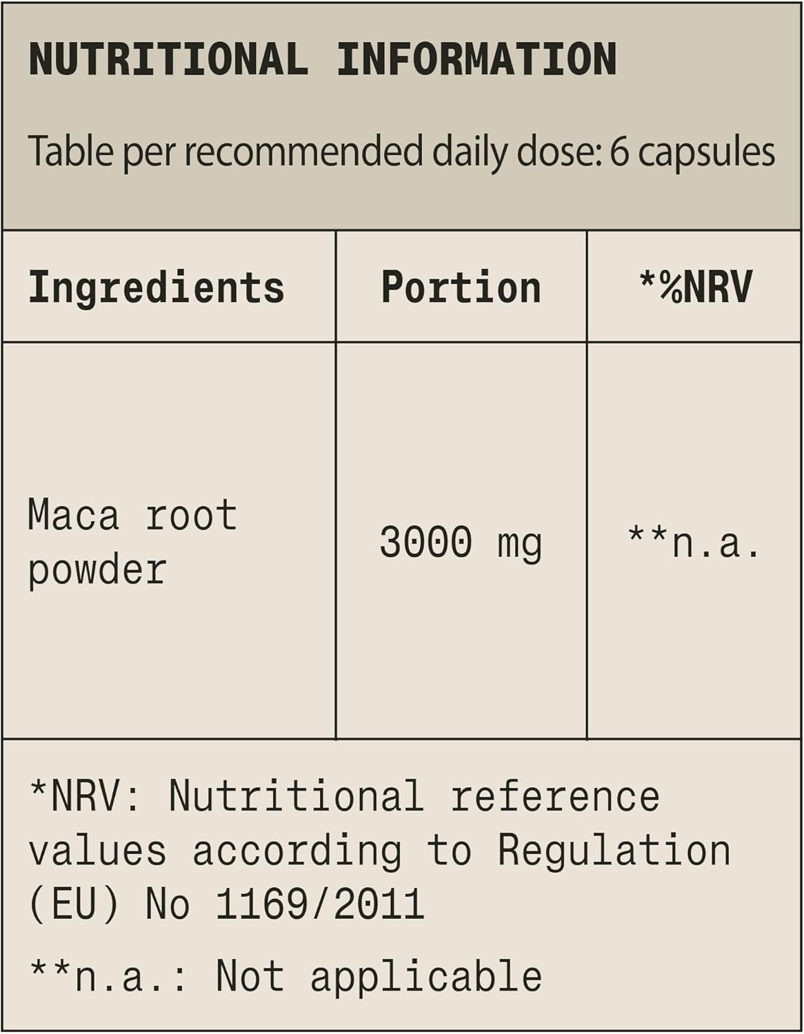 MACA PROPERTIES: Maca has a Tonic-Adaptogenic action capable of inducing a state of greater non-specific resistance in a body which helps to counteract stress by increasing the body’s ability to adapt to environmental factors. Maca represents a tonic that can counteract physical and mental fatigue.