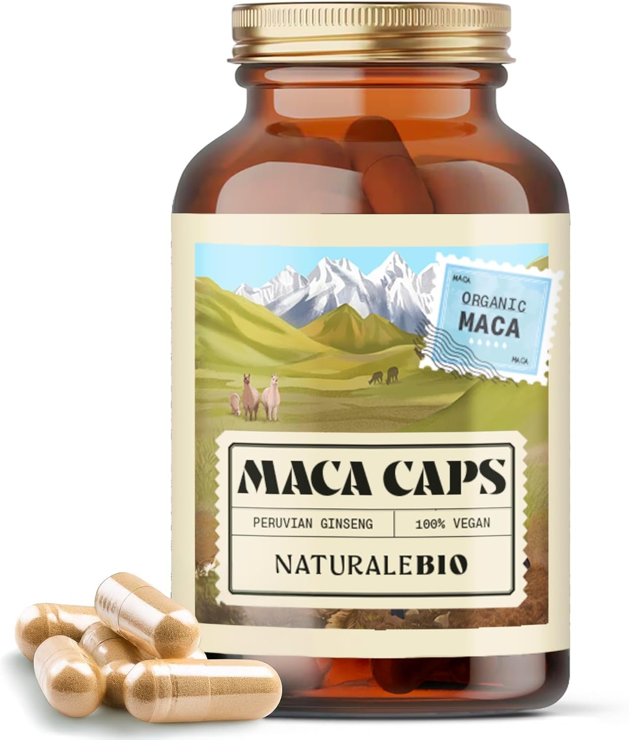NaturaleBio Organic Maca Capsules, 500mg – 180 Capsules. Gelatinised, Natural and Pure, from Organic Peruvian Maca Root. Vegetarian and Vegan Friendly.