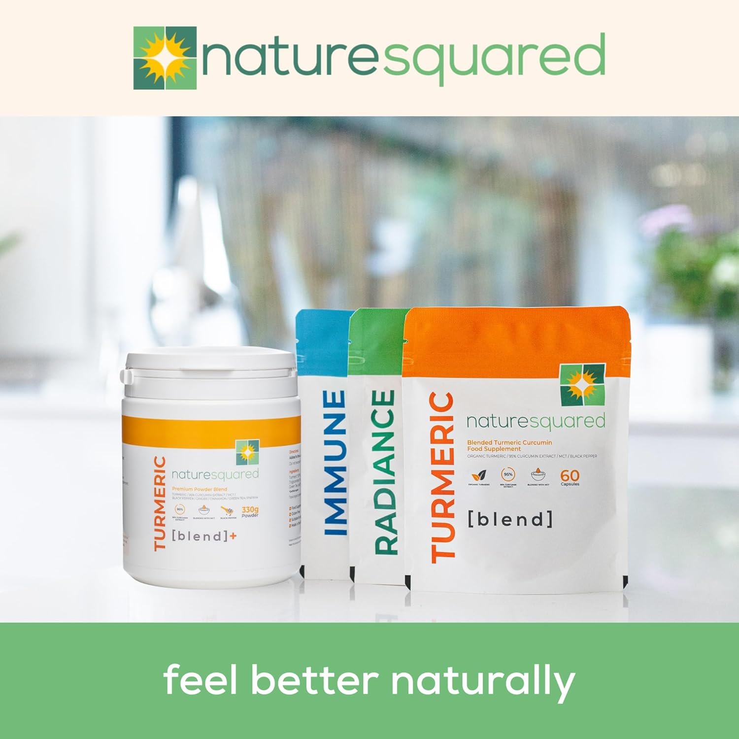 Nature Squared Turmeric Super [Blend] – Premium & Organic Turmeric (3933mg) Powder with 7 Active Ingredients – 330g(3 Month Supply) – Vegan – Non GMO – Gluten Free – GMP – Potent Antioxidant- UK Made