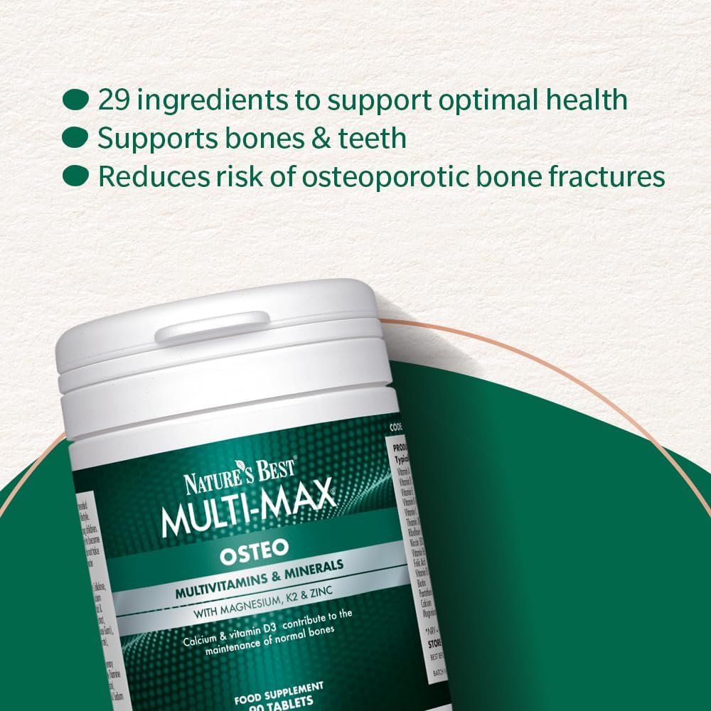 Nature’s Best Multi-Max Osteo Multivitamin for Bones – with Vitamin C, D, Magnesium, Calcium – Comprehensive Bone Health Support – UK Made – 90 Tablets (Over 1 Month’s Supply)