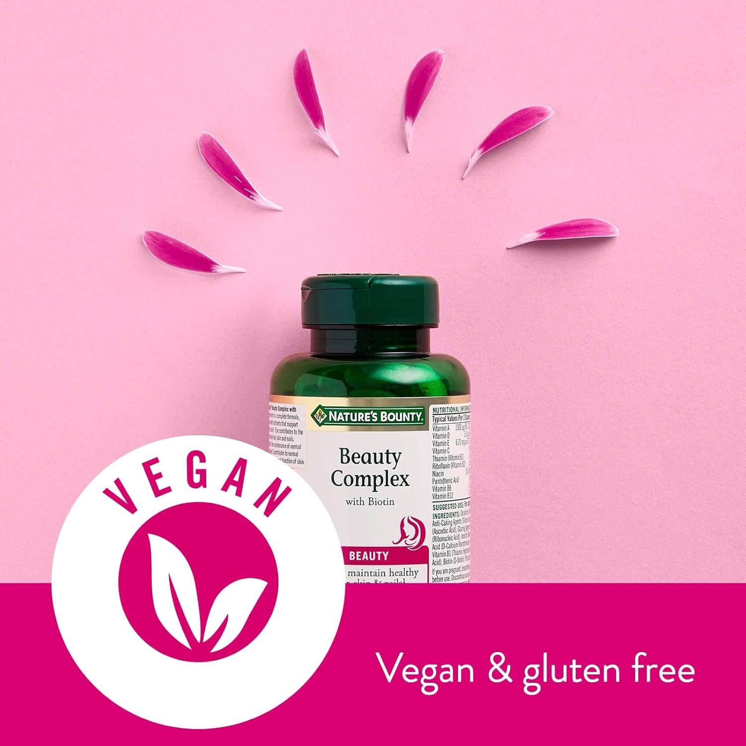 ✓ FOR HAIR, SKIN AND NAILS. Nature’s Bounty Beauty Complex with Biotin is designed to protect the beauty of your hair, skin and nails from the effects of busy lifestyles and city living. Two caplets a day of Nature’s Bounty Beauty Complex with Biotin can help, as an antioxidant supplement that can fight free radicals within the body and protect against oxidative stress